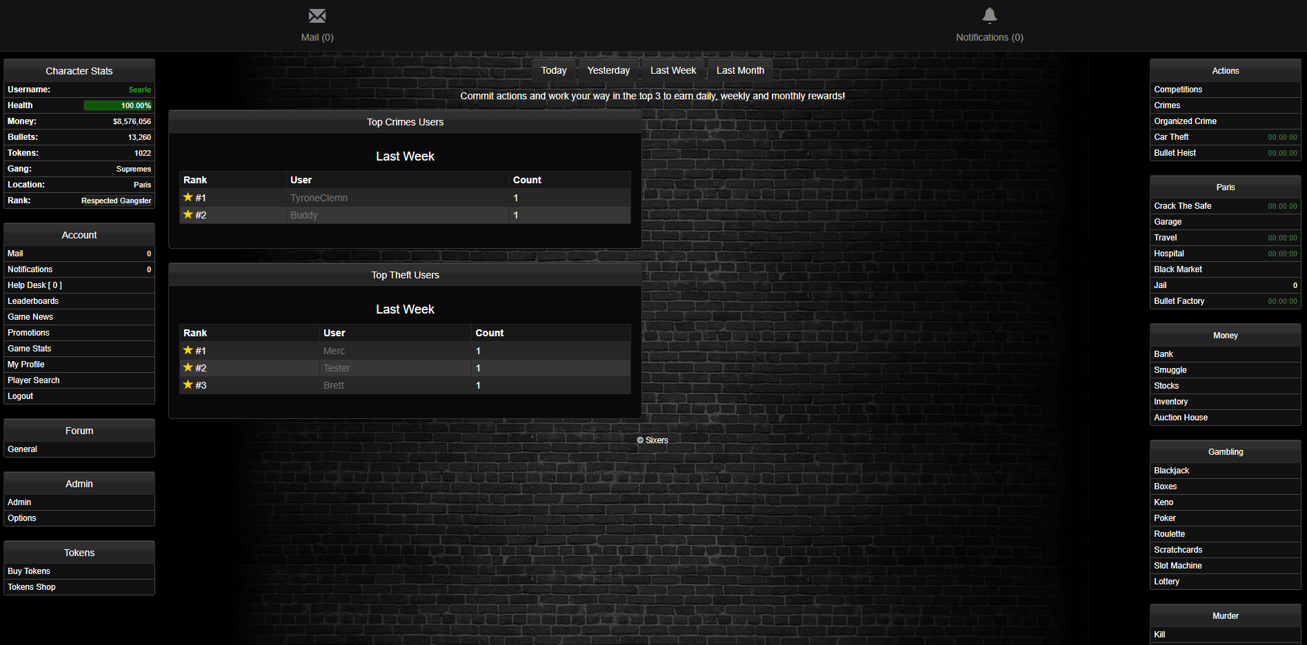 • Live leaderboard showing top players per timeframe (Current, Yesterday, Last Week, Last Month)