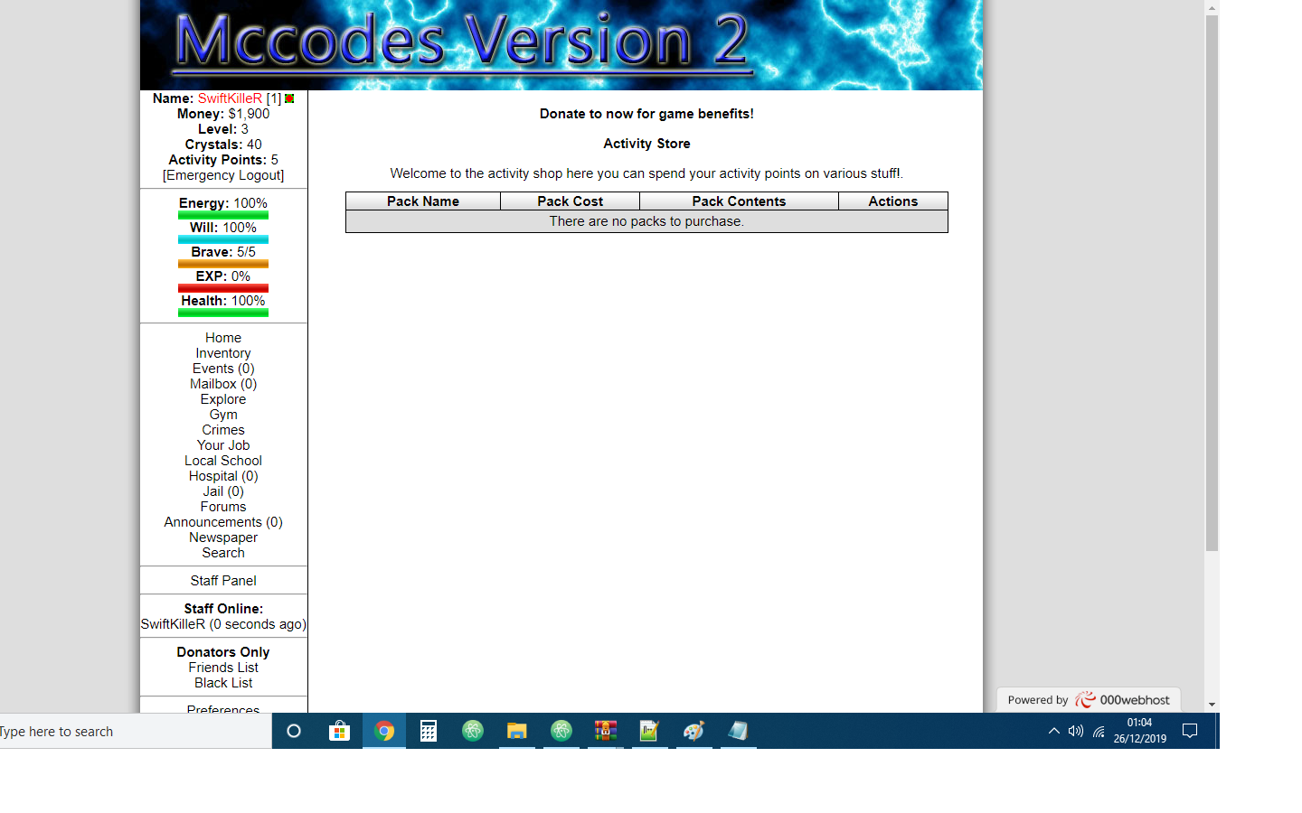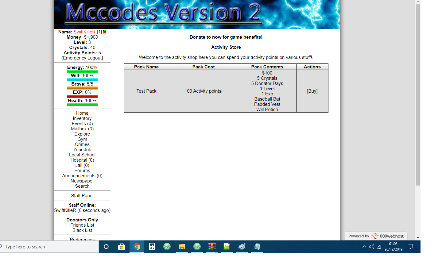 * Earn Activity points if online for 15 minutes or more (can make it changeable it v1.0.1)