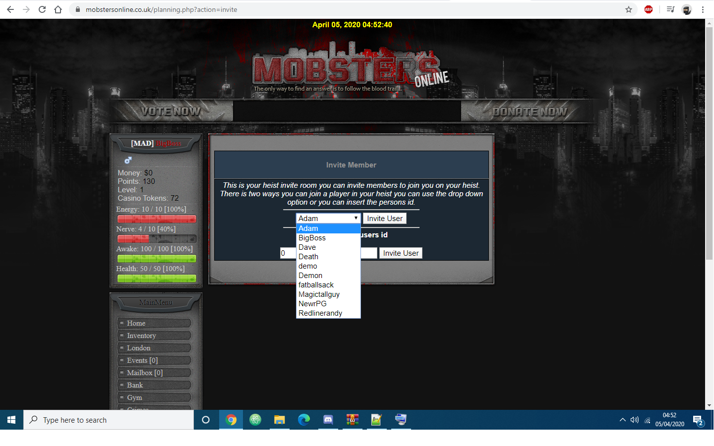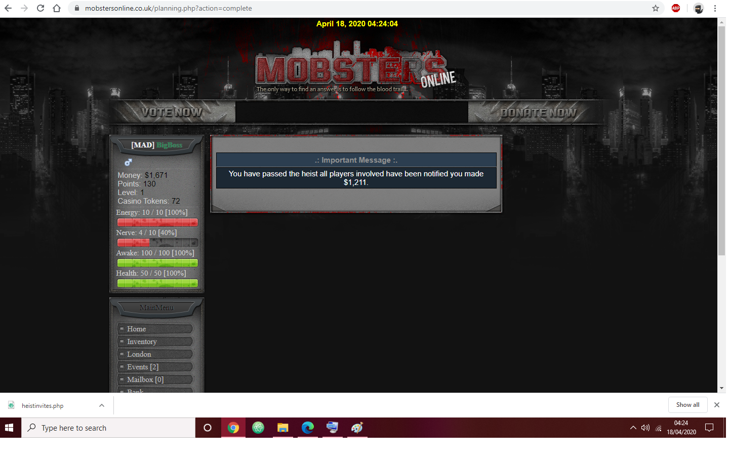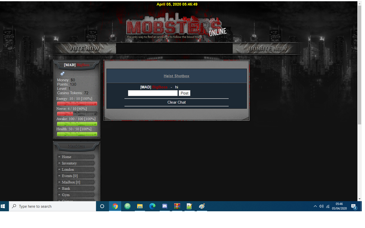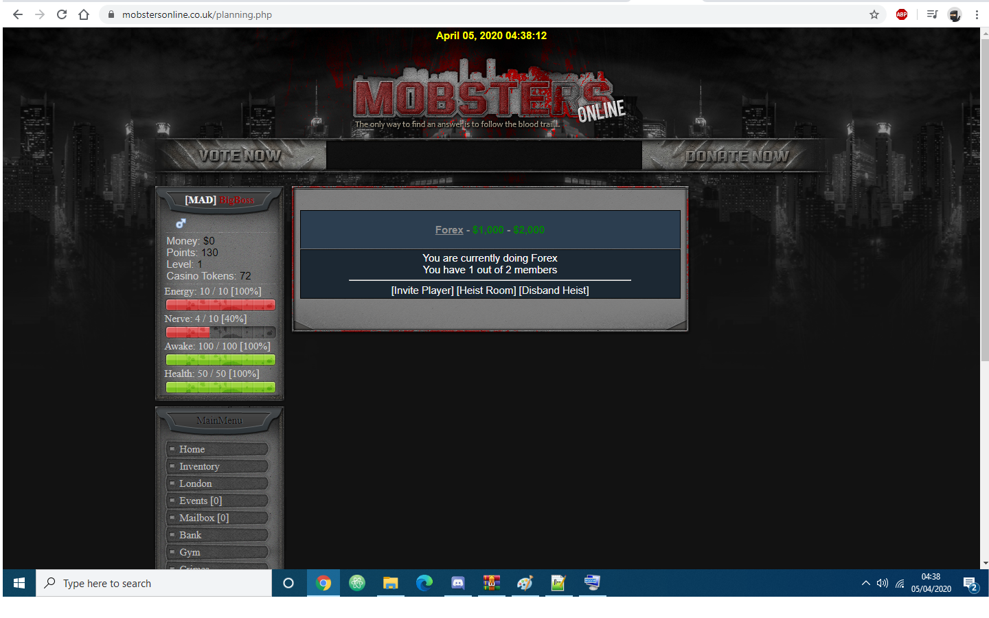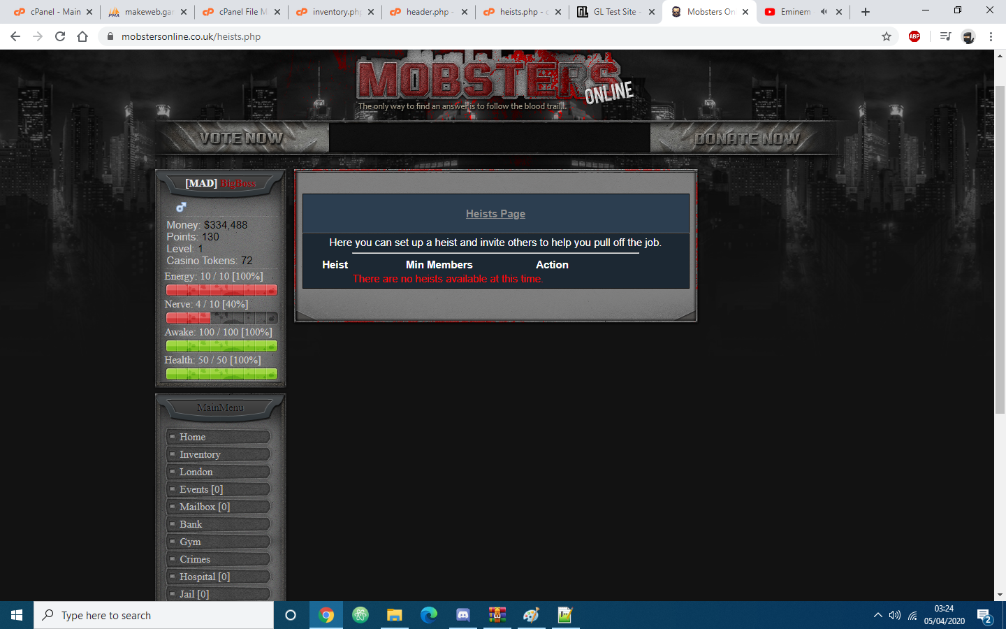 With the heists module installed on your game the game owner can create heists that the users can set up and plan. There is a shout box for the players in the heist to speak to each other while they wait for members.