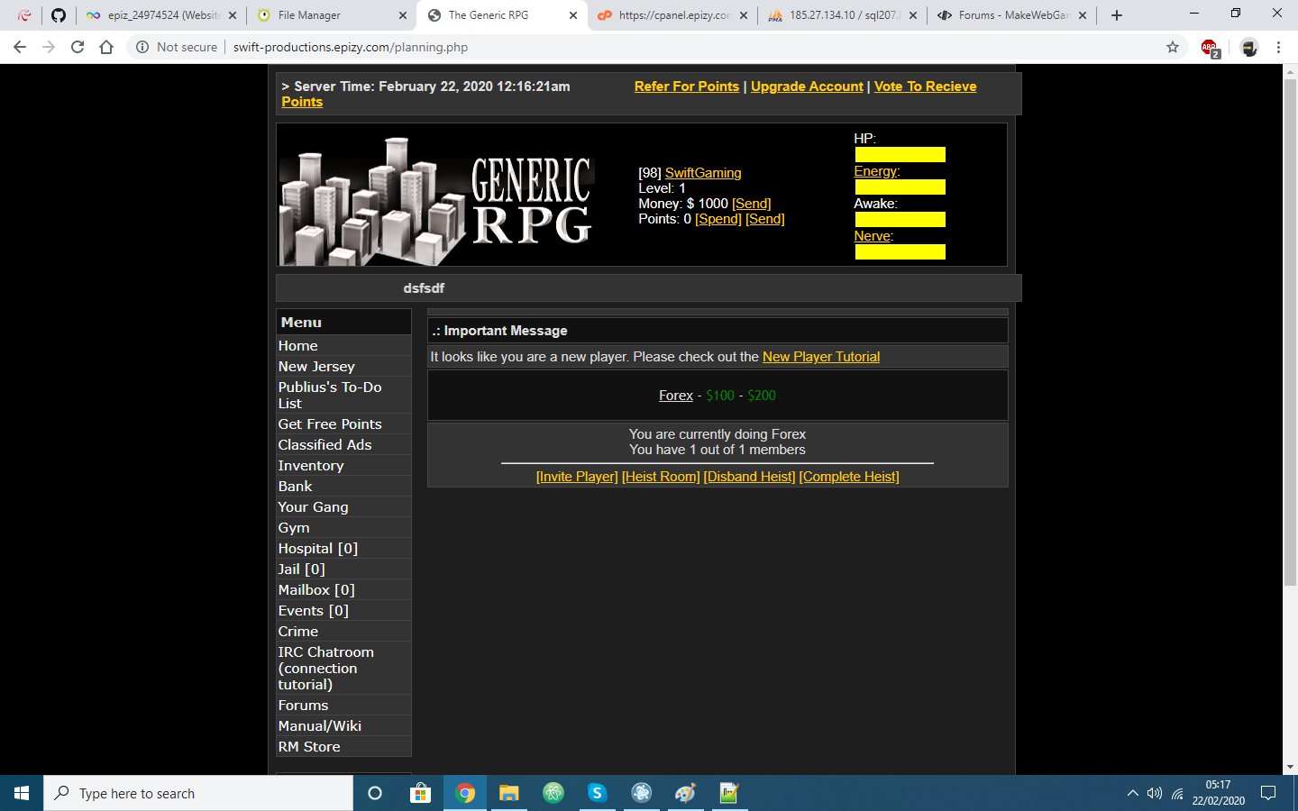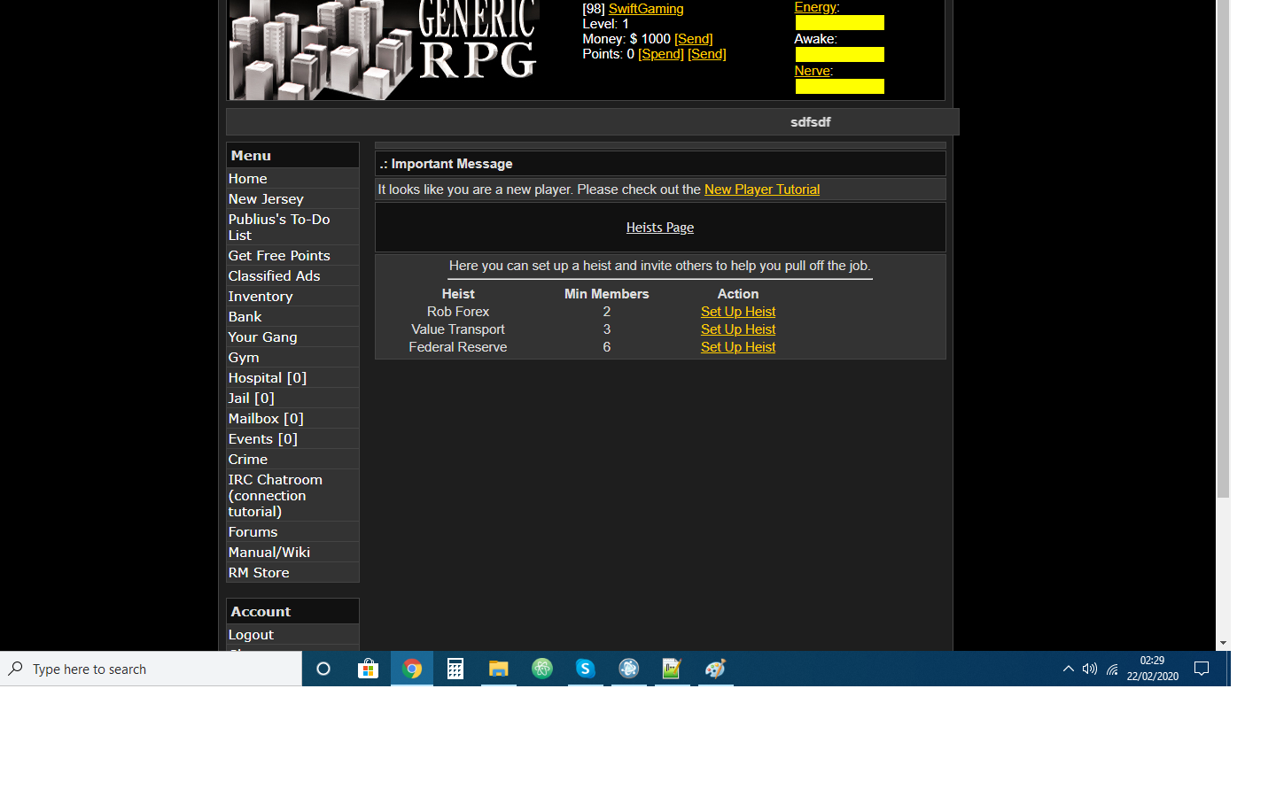 With this heists module installed on your grpg game your users will be able to set up organised crimes based on what you create.