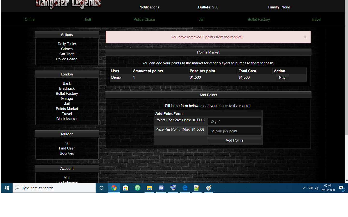 Max points that a user can sell at once time (currently set to 10,000)