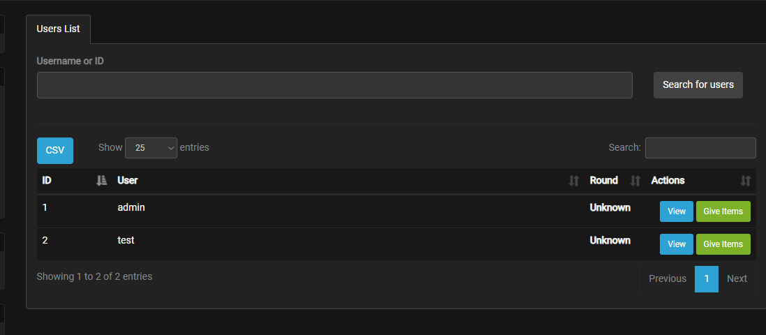 This mod allow you to view, Update, give items, unequip slots from your game users.