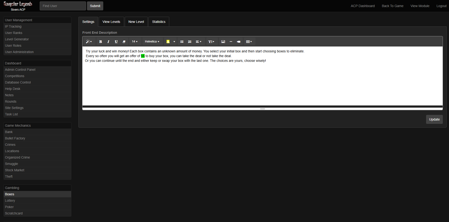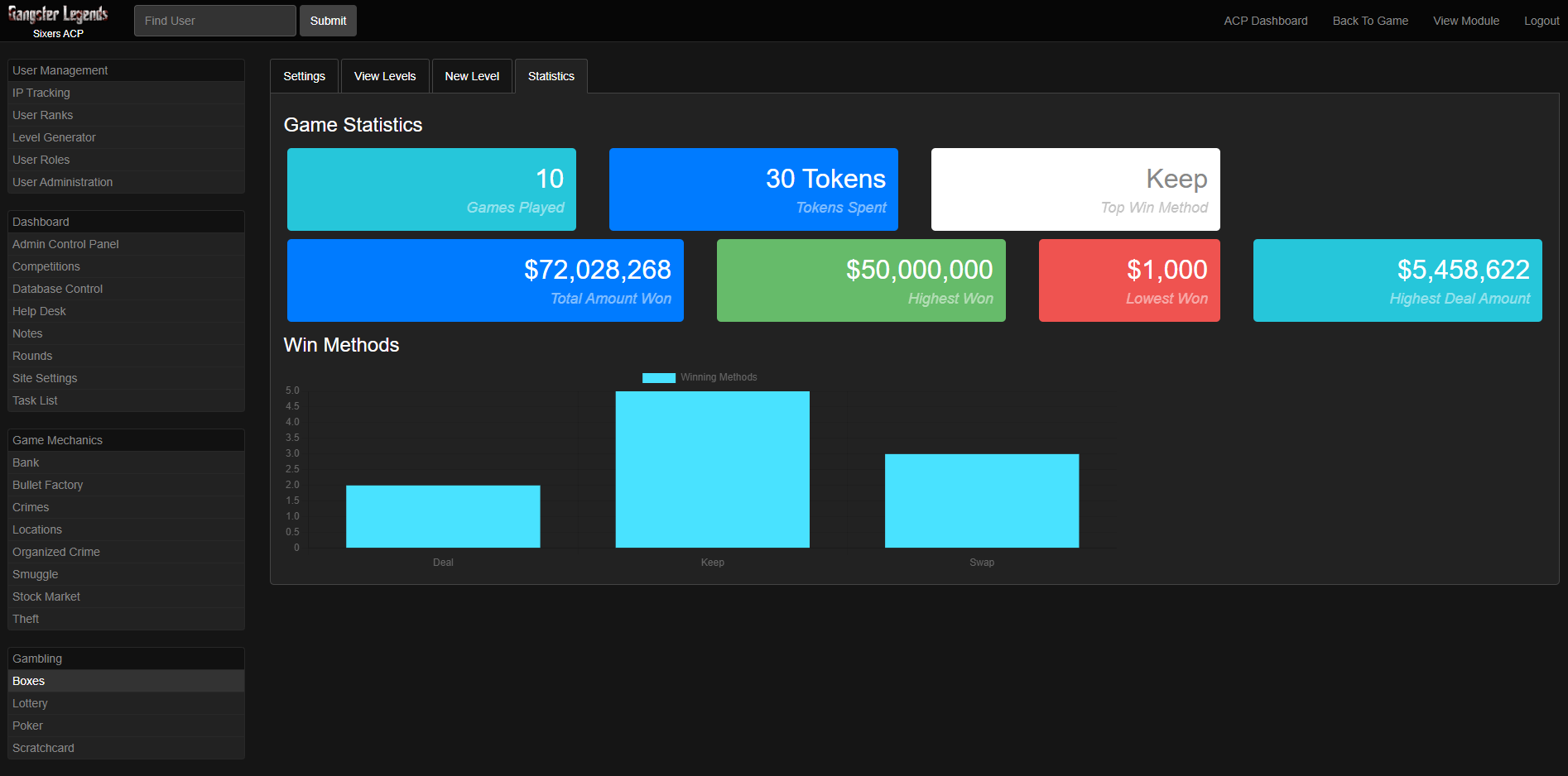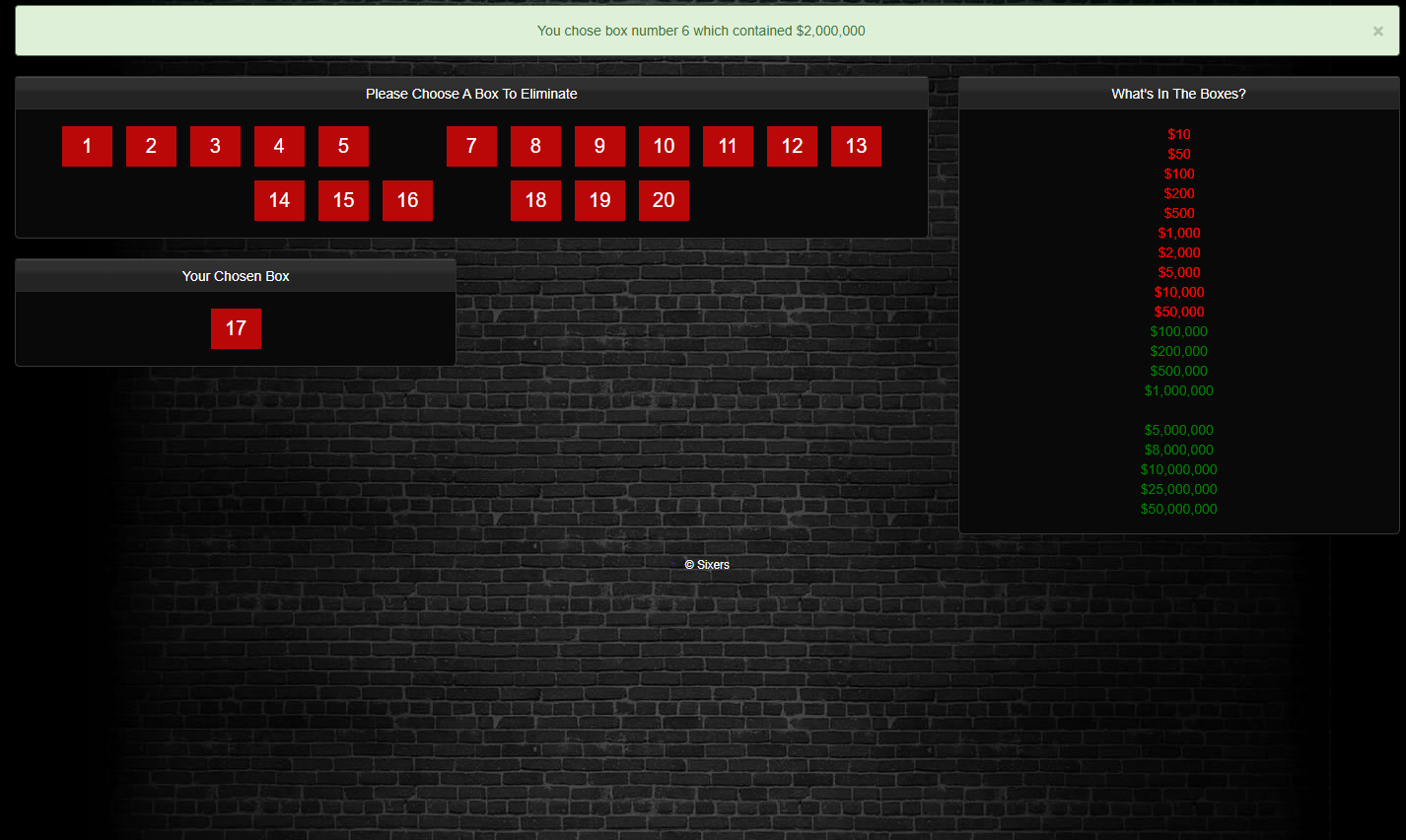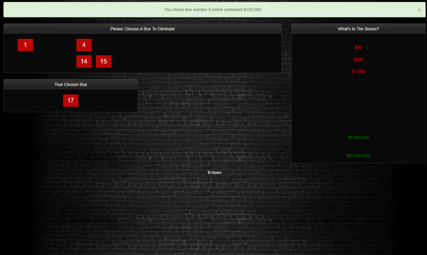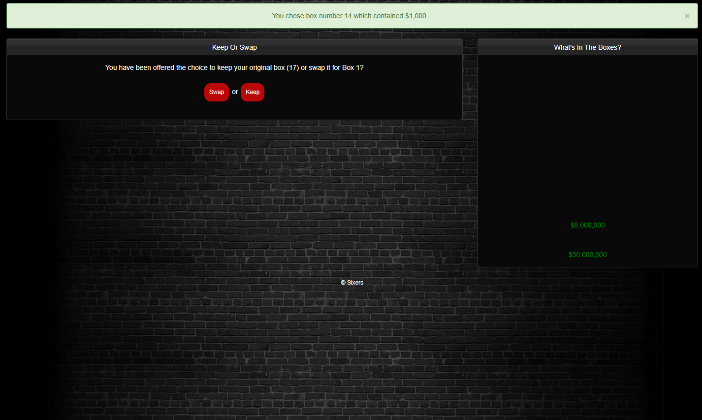 • Gambling module game based on the English TV show "Deal or No Deal"