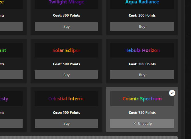 Take customization to the next level with the Profile Cosmetics module. Let your players stand out with unique designs, animated effects, and personalized flair for their in-game identities!