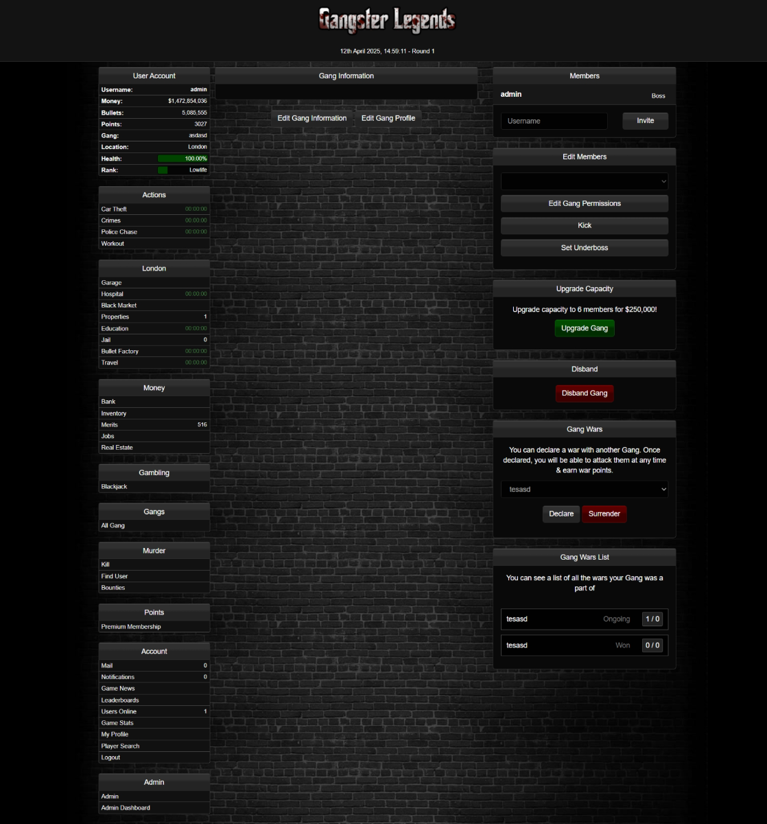 Bring your gang system to life with this fully integrated Gang War Module—perfect for any crime, mafia, or roleplay game running on the GLv2 engine.