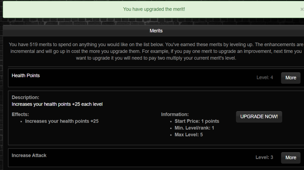 Players can earn and upgrade merits to unlock unique benefits as they rise through the ranks—while admins maintain full control over what’s offered, how it evolves, and how it fits your game world.