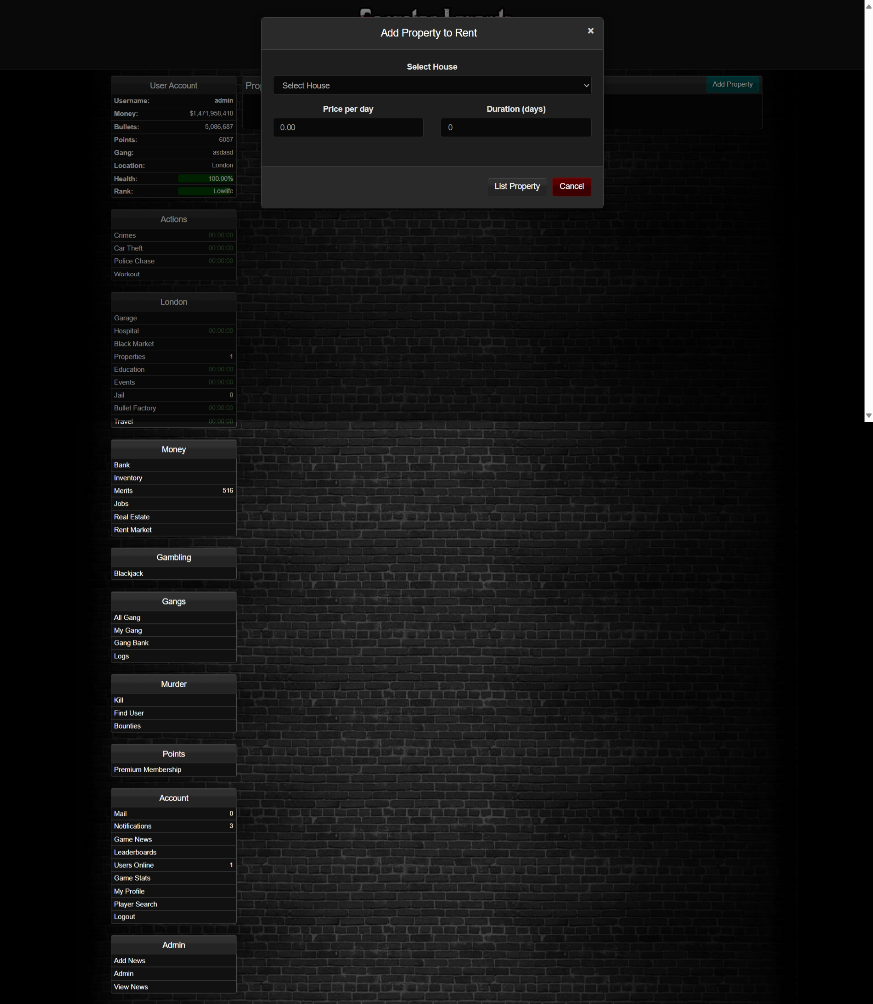 • Players without a home can browse and rent available properties.