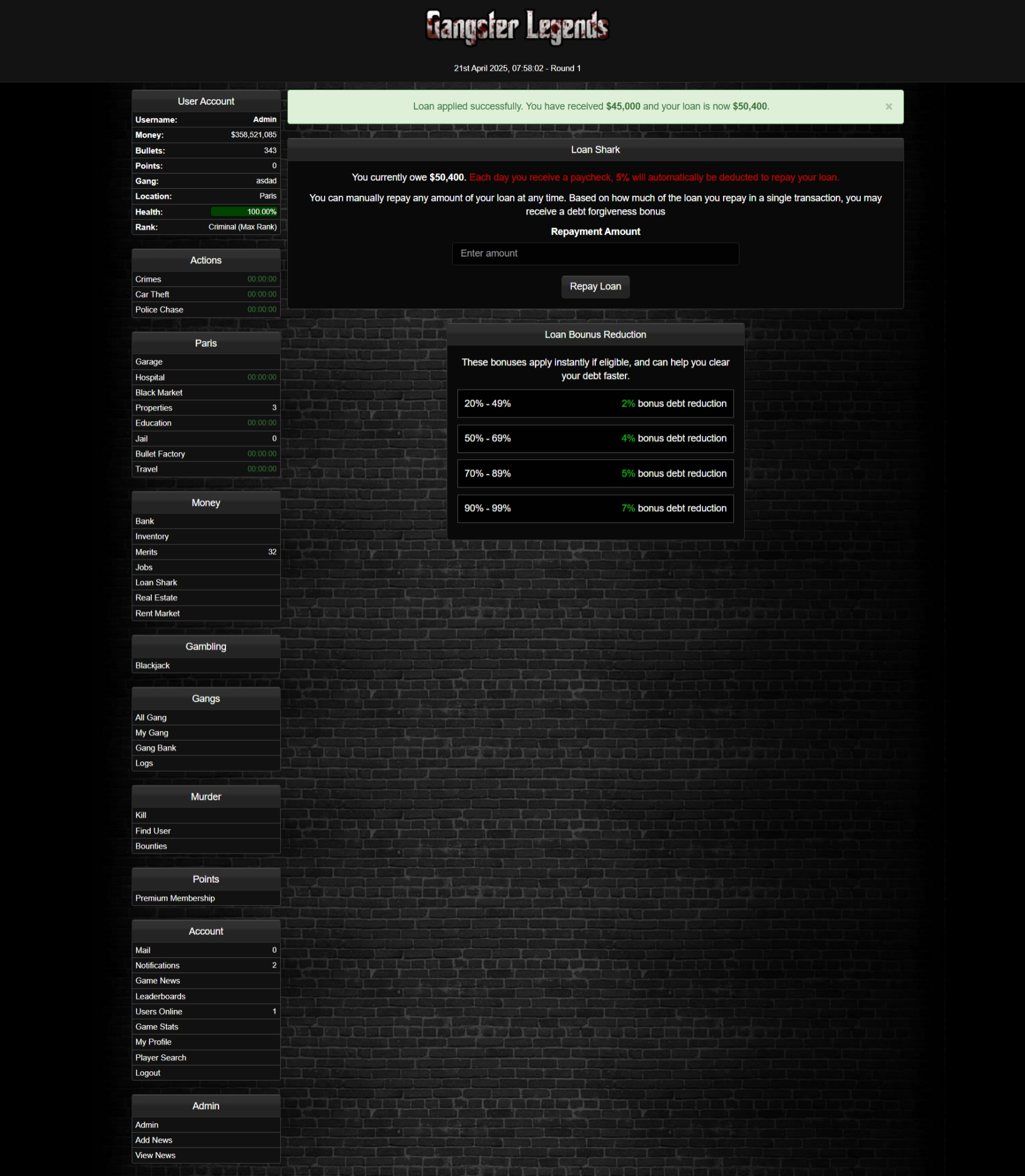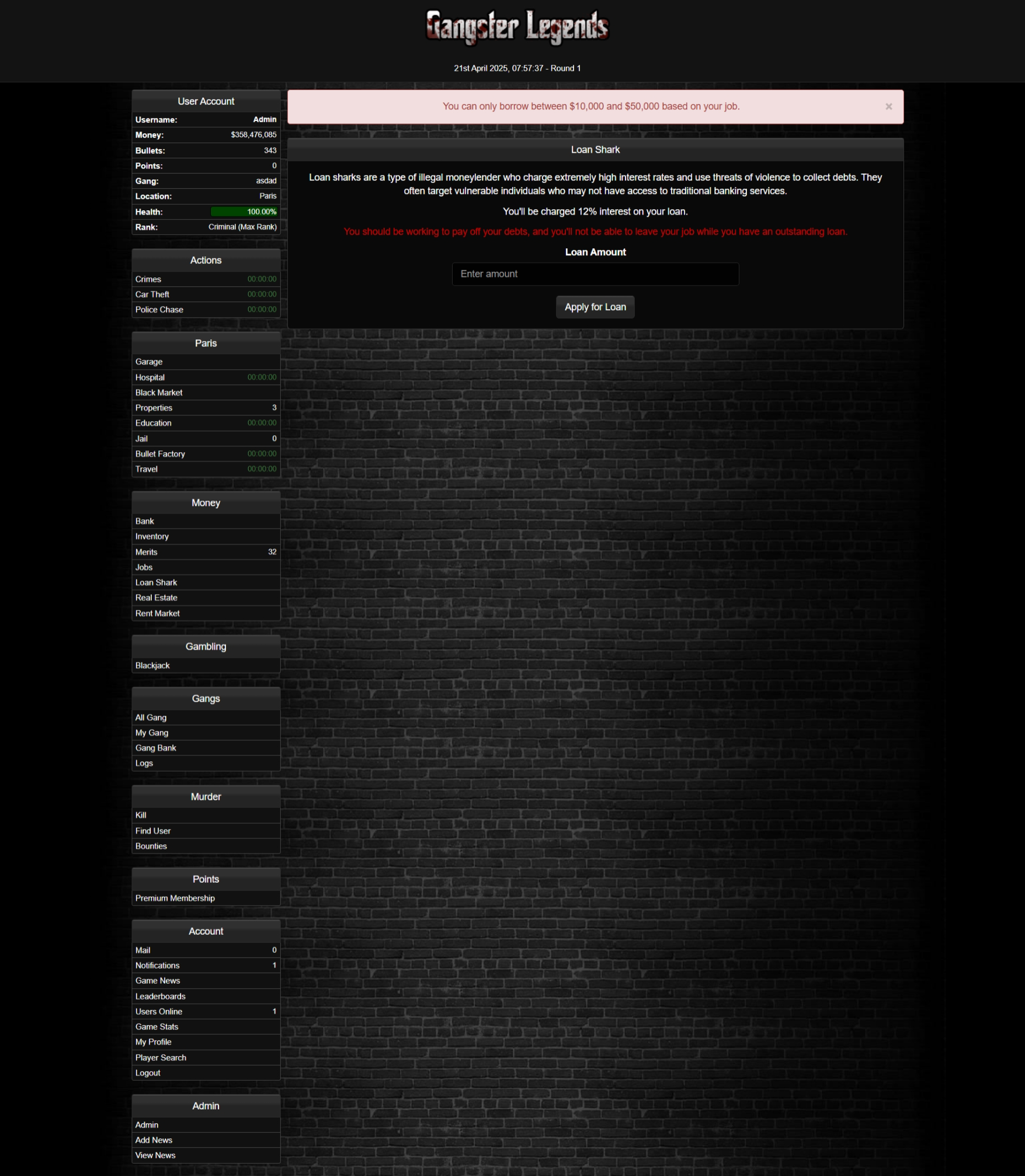 • Fully integrated with job salaries for dynamic loan caps and realistic conditions.