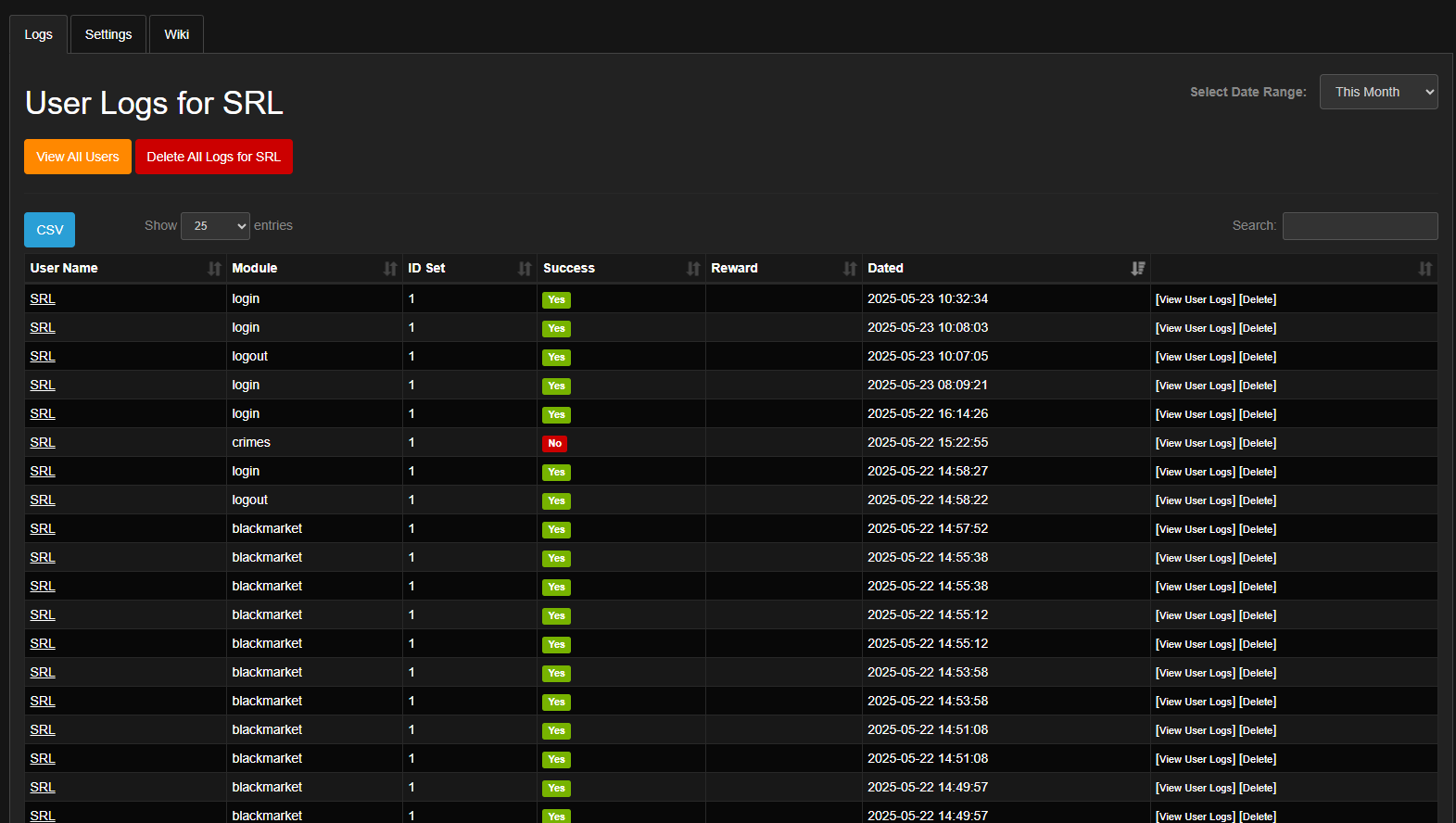 Simple module that inserts the userActions hook logs into the database and displays them.