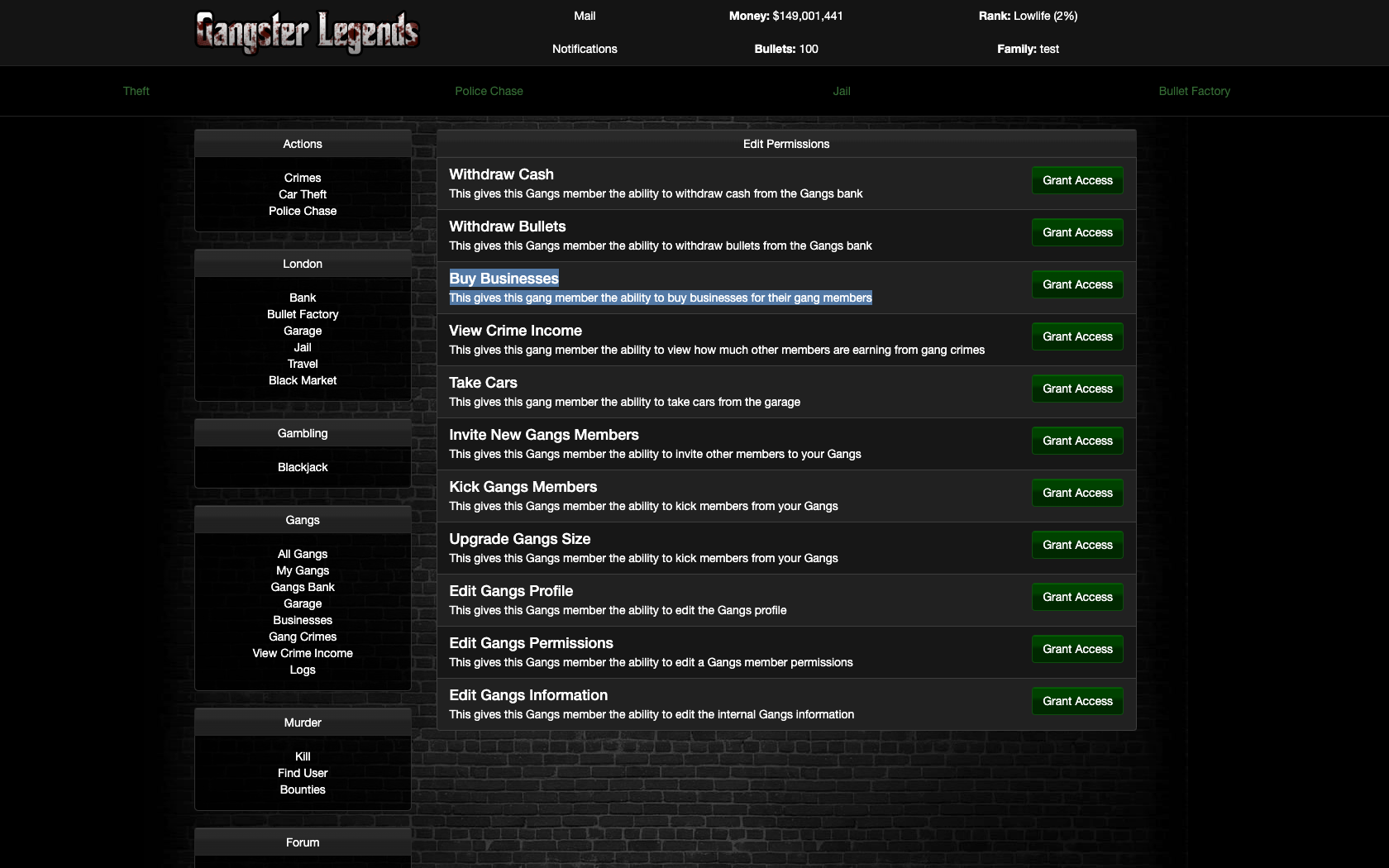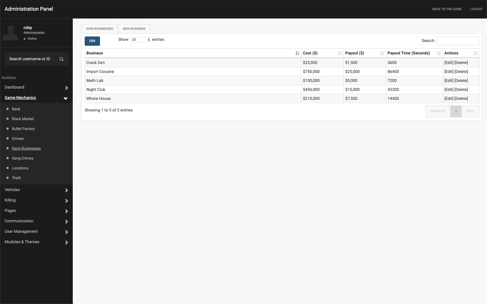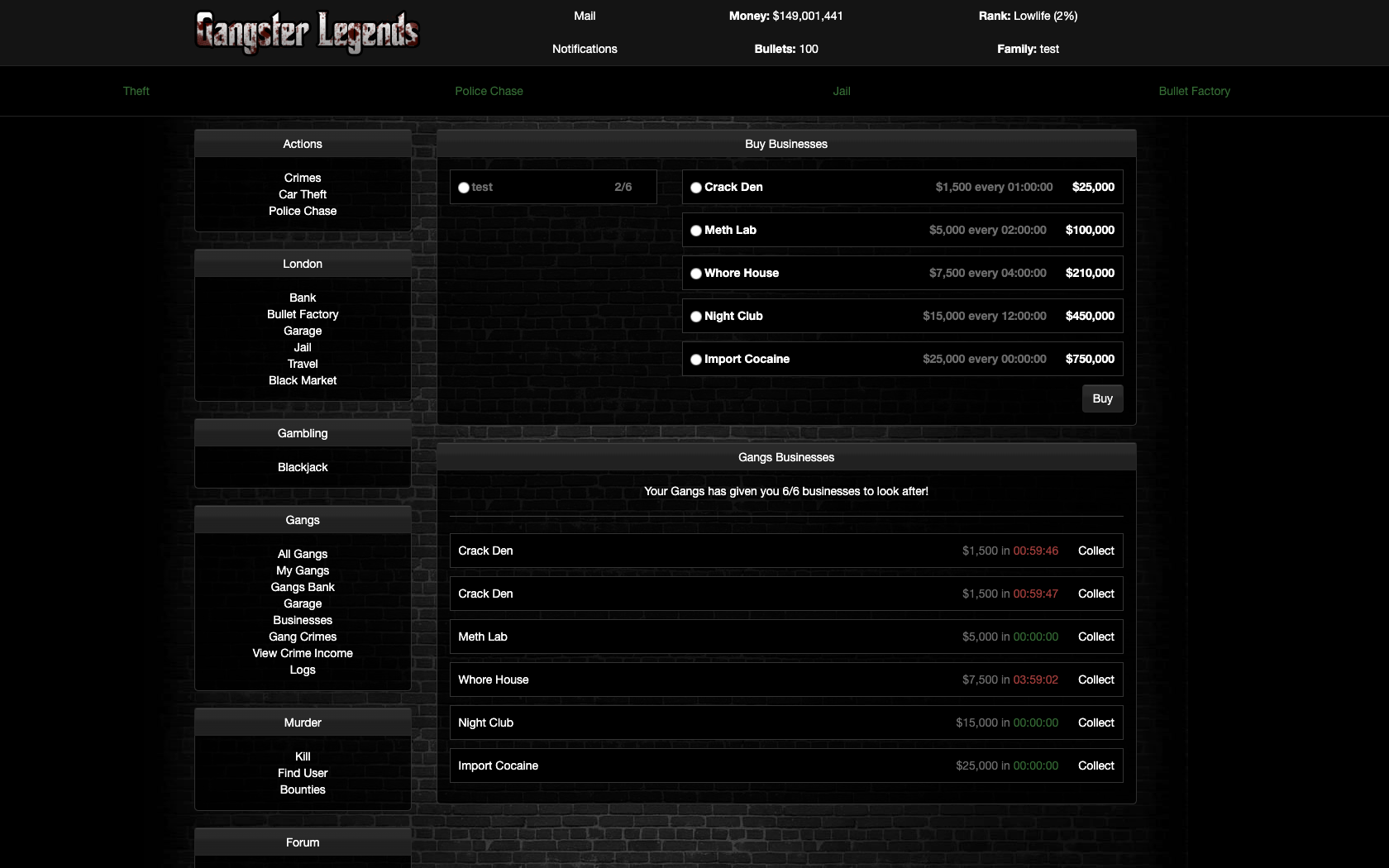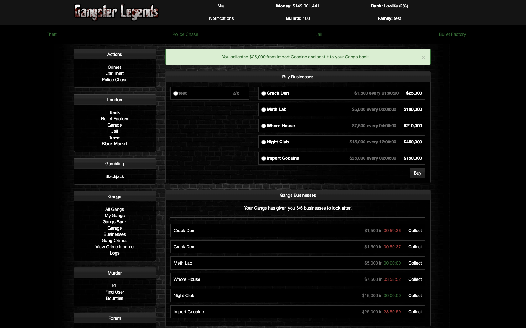 This module allows gang members to own businesses that generate income for their gang.