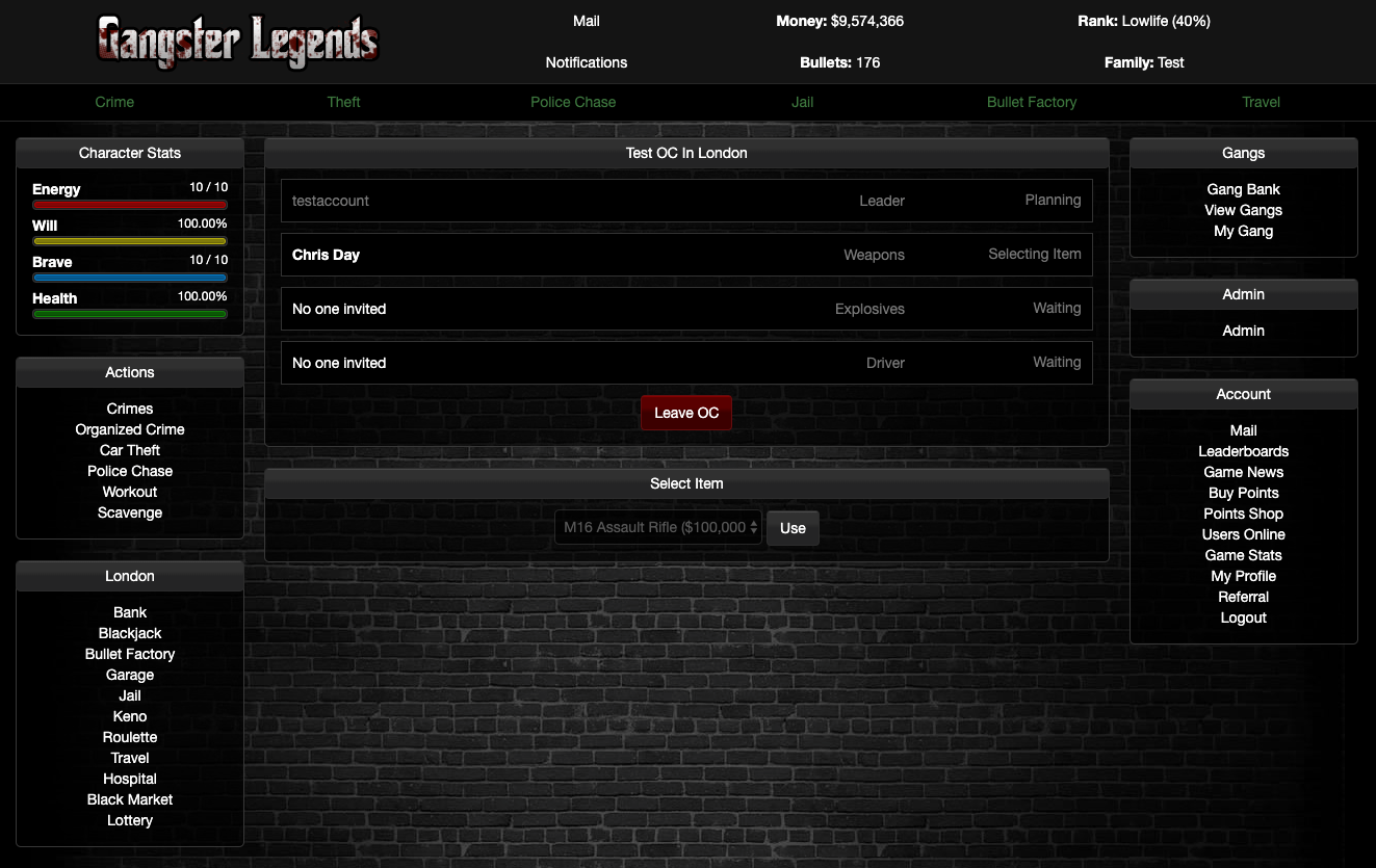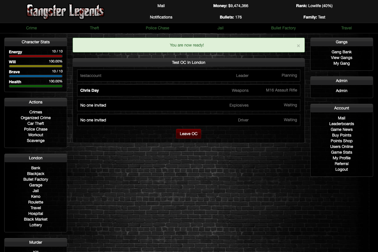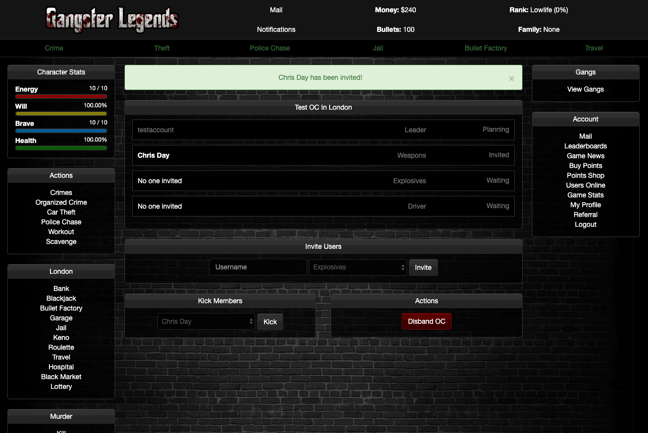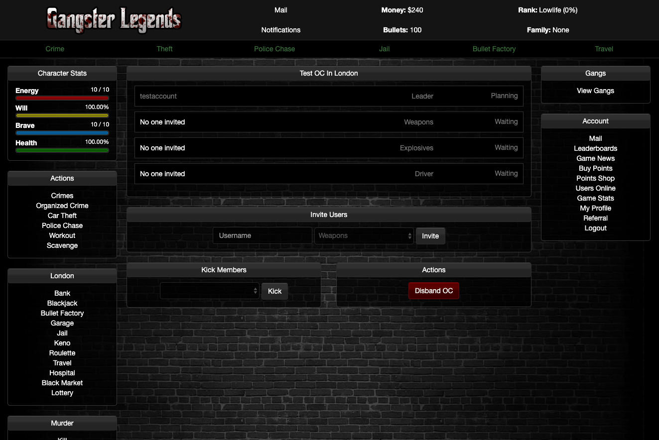 Once everyone is ready and in the same location the leader can commit the crime. The payout and chance of success all depends on the users equipment.