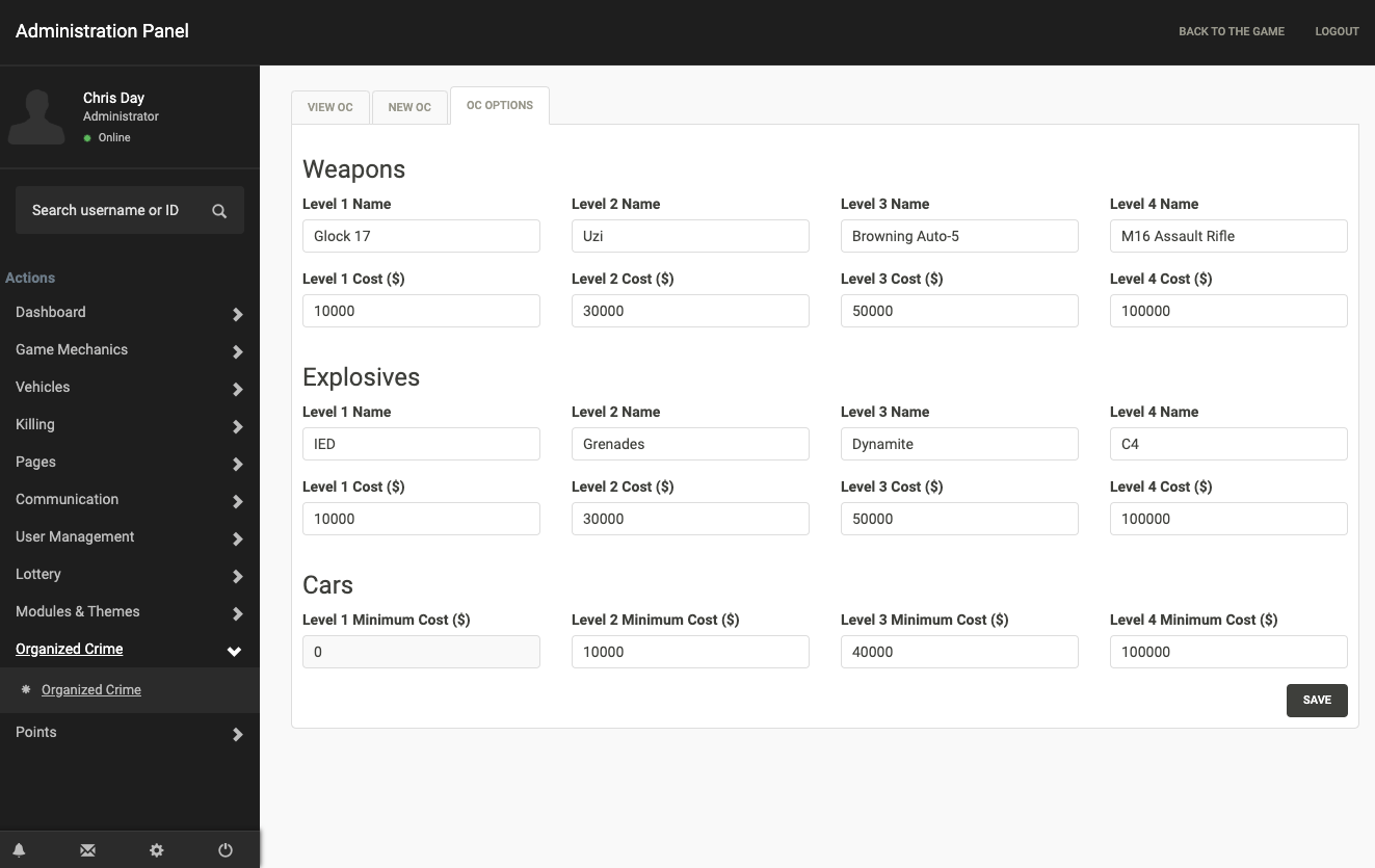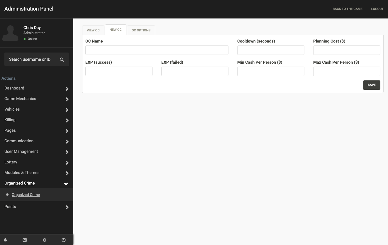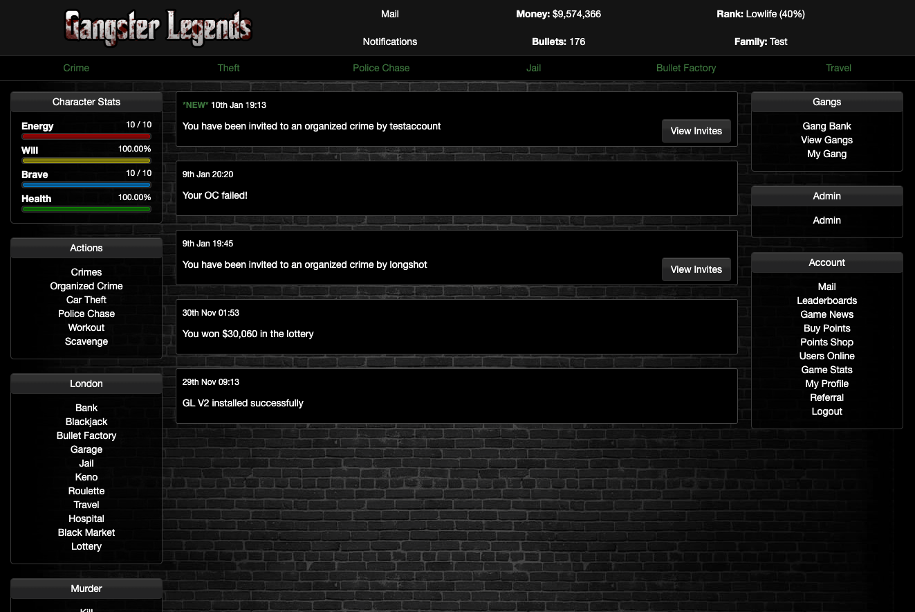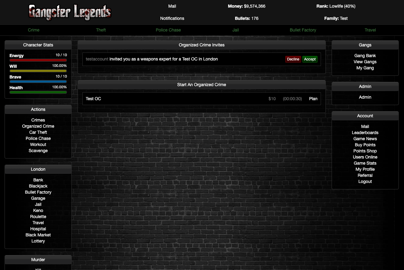 Once everyone is ready and in the same location the leader can commit the crime. The payout and chance of success all depends on the users equipment.