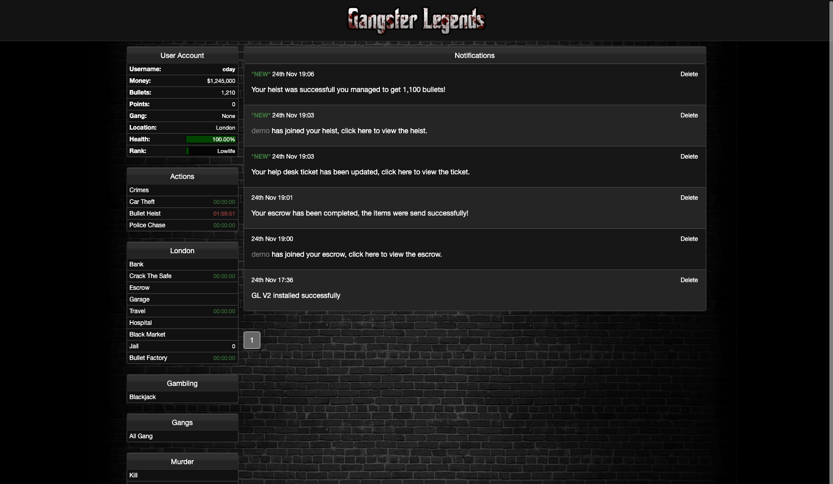 This module allows two users join together and select a car, once selected they commit the heist to win some bullets.