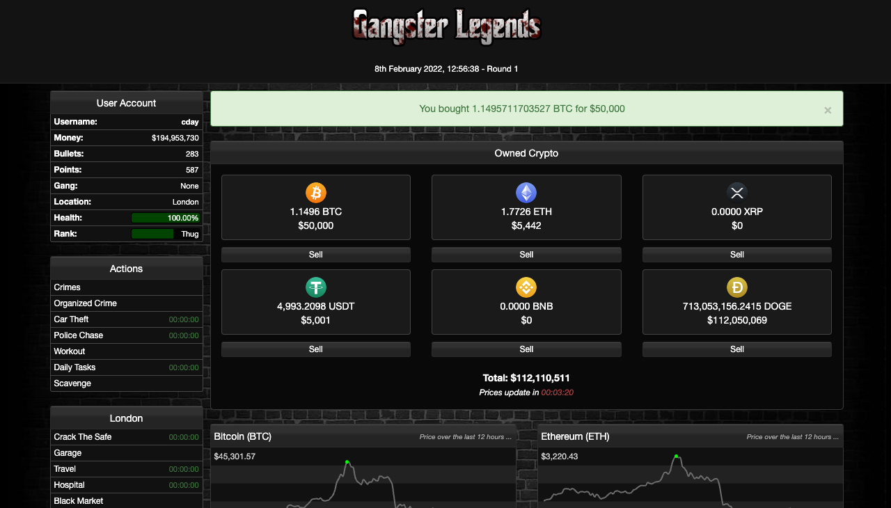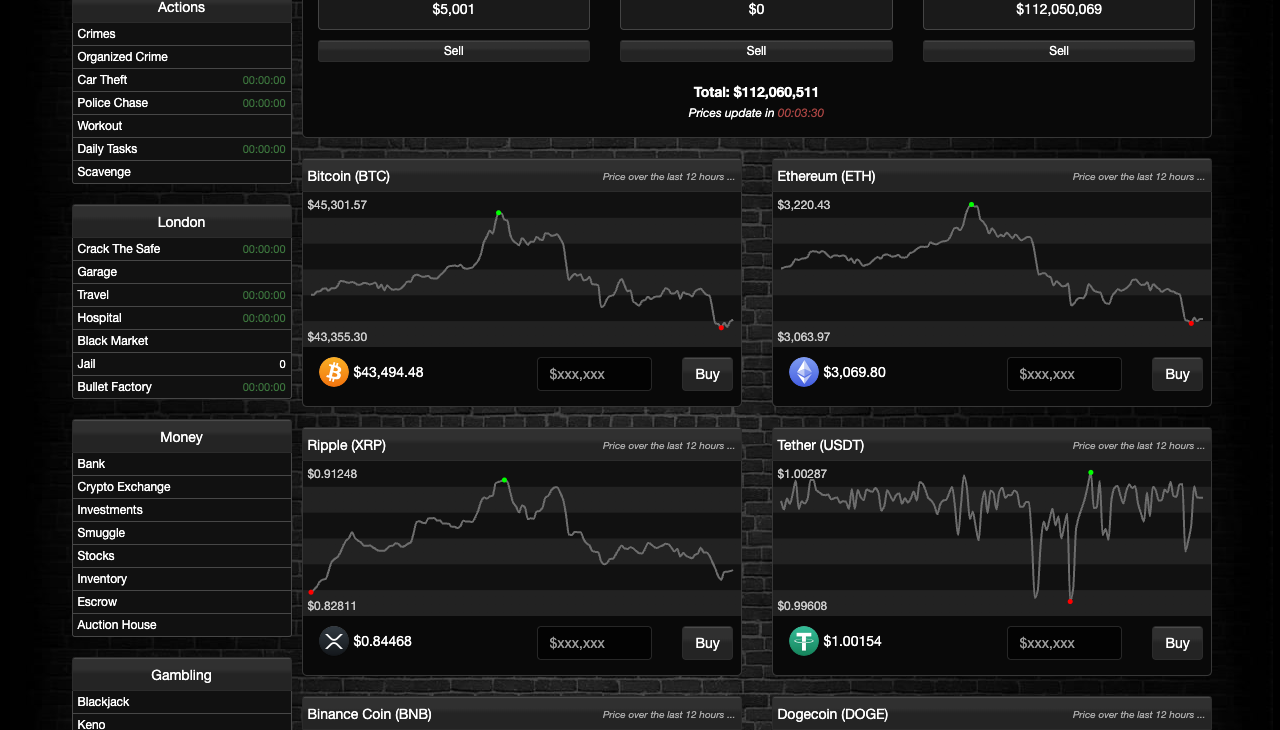 This module allows users to buy virtual crypto using in game currency, it uses a remote API to get the latest crypto prices!