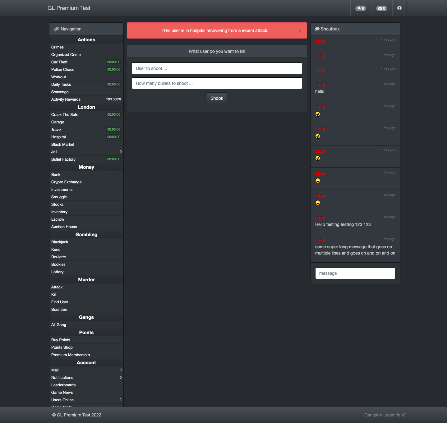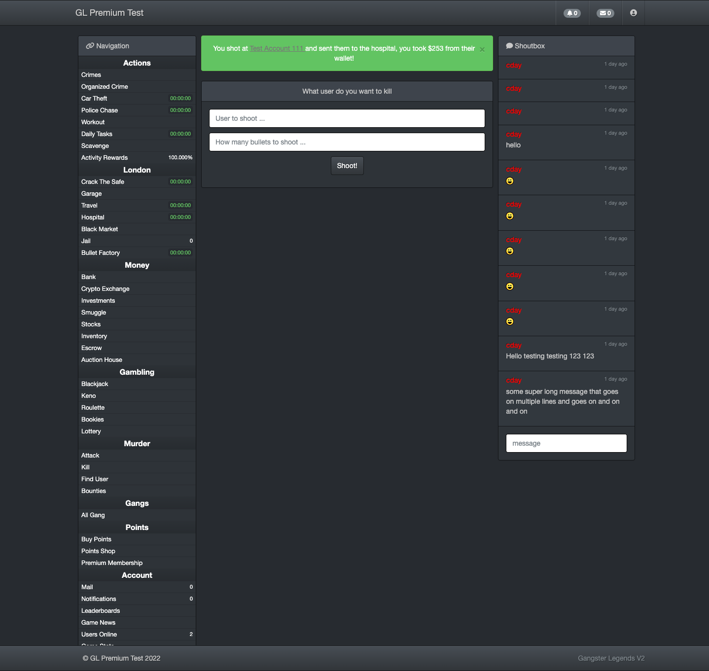 This is a simple edit to the kill system, rather than killing a user you instead send them to hospital for 15 minutes and steal all their money on hand. You only do this when you get them under 0% health. If they still have health after the attack you get nothing but they get a notification! The user is only able to attack once every 60 seconds.