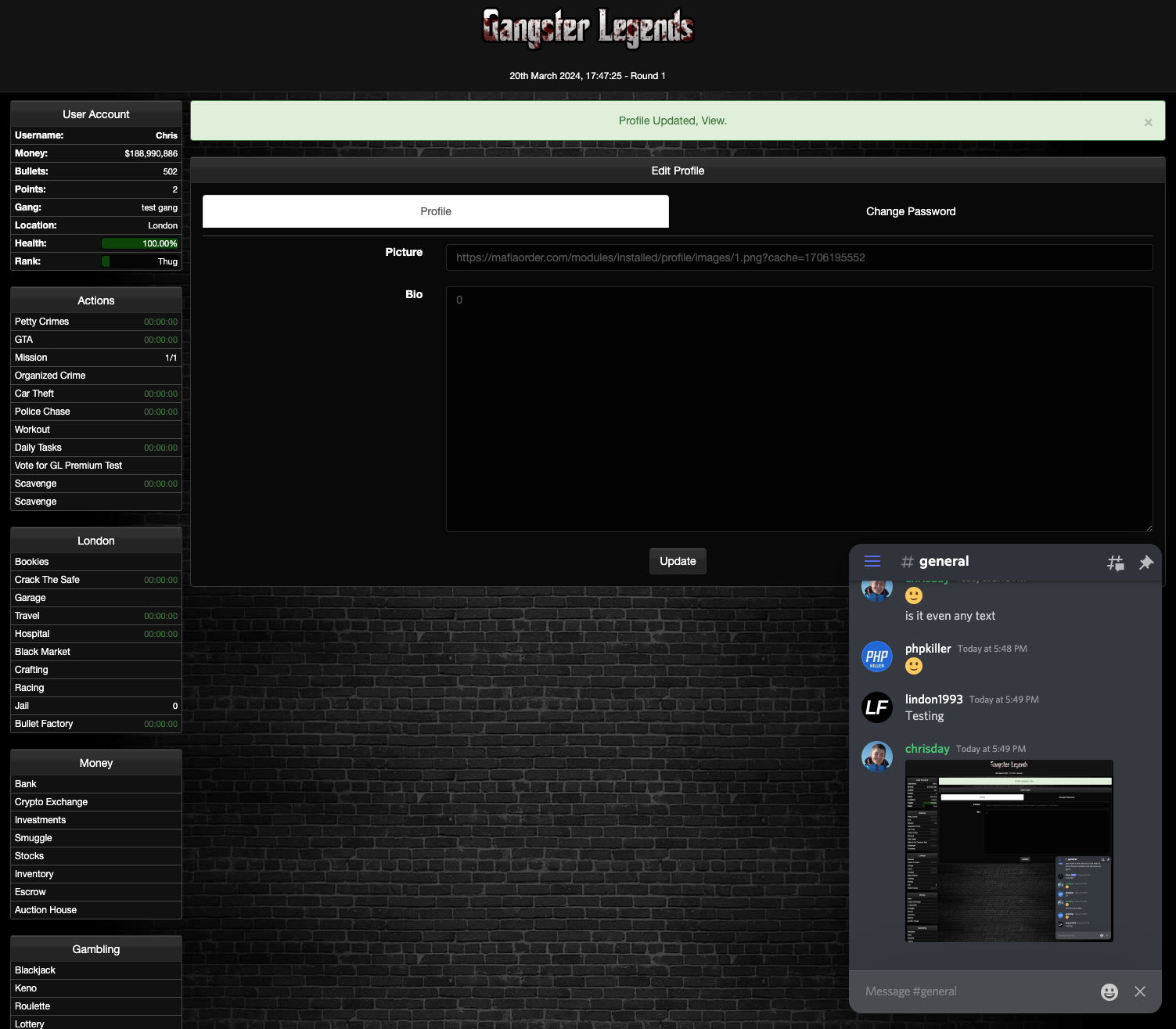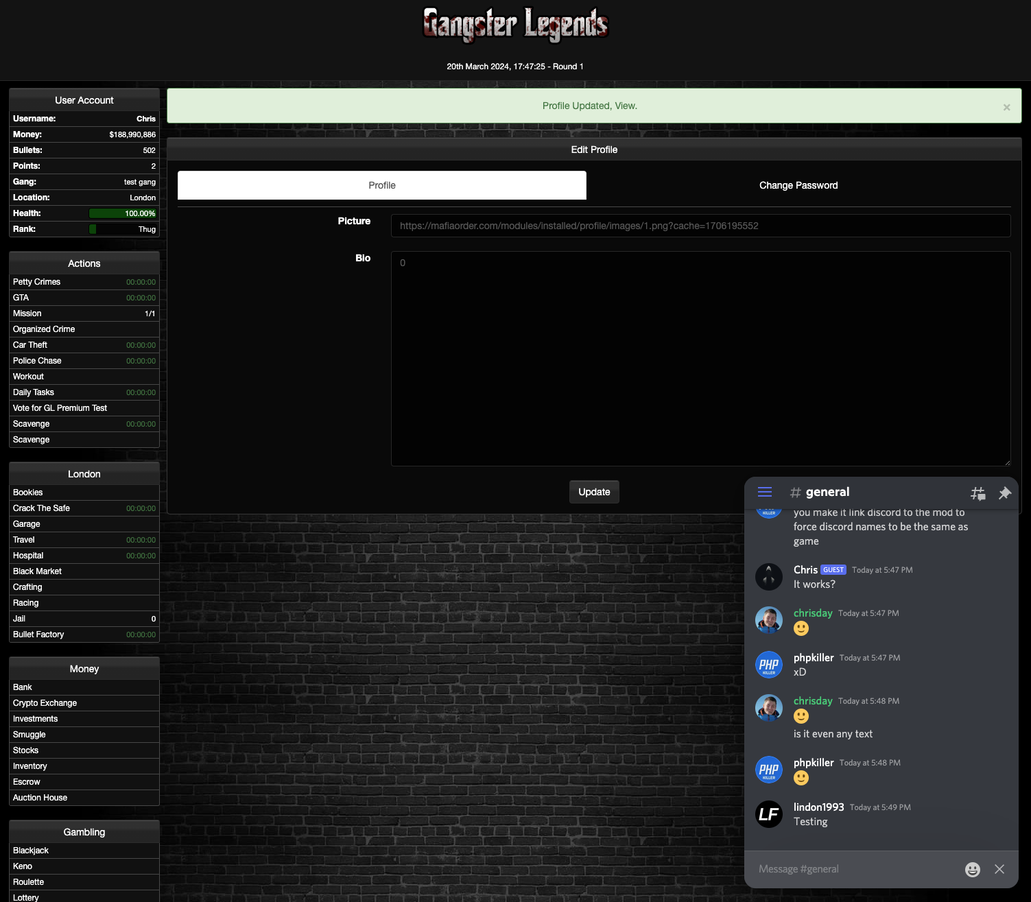 An amazing module to replace the old ajax chat and send some activity over to the game discord server