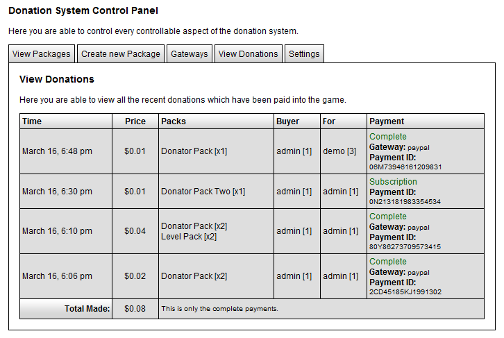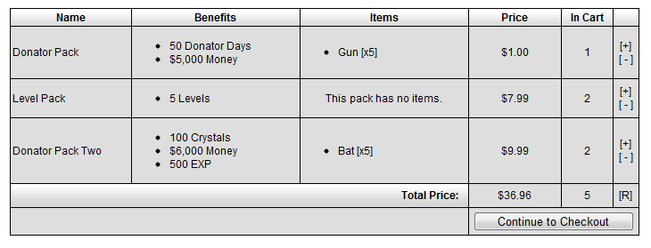 Our Ajax donation system is a must have for any new or old MCCodes v2 game! With it's vast amount of features which have never been seen before in a donation system this could potentially increase your sales making your site more profitable!