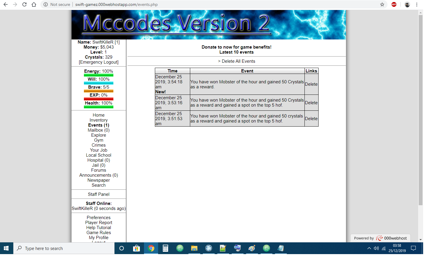 If you win the Mobster of the hour you will be inserted into the hall of fame if you win it again and beat your old score your record will be updated in the database.