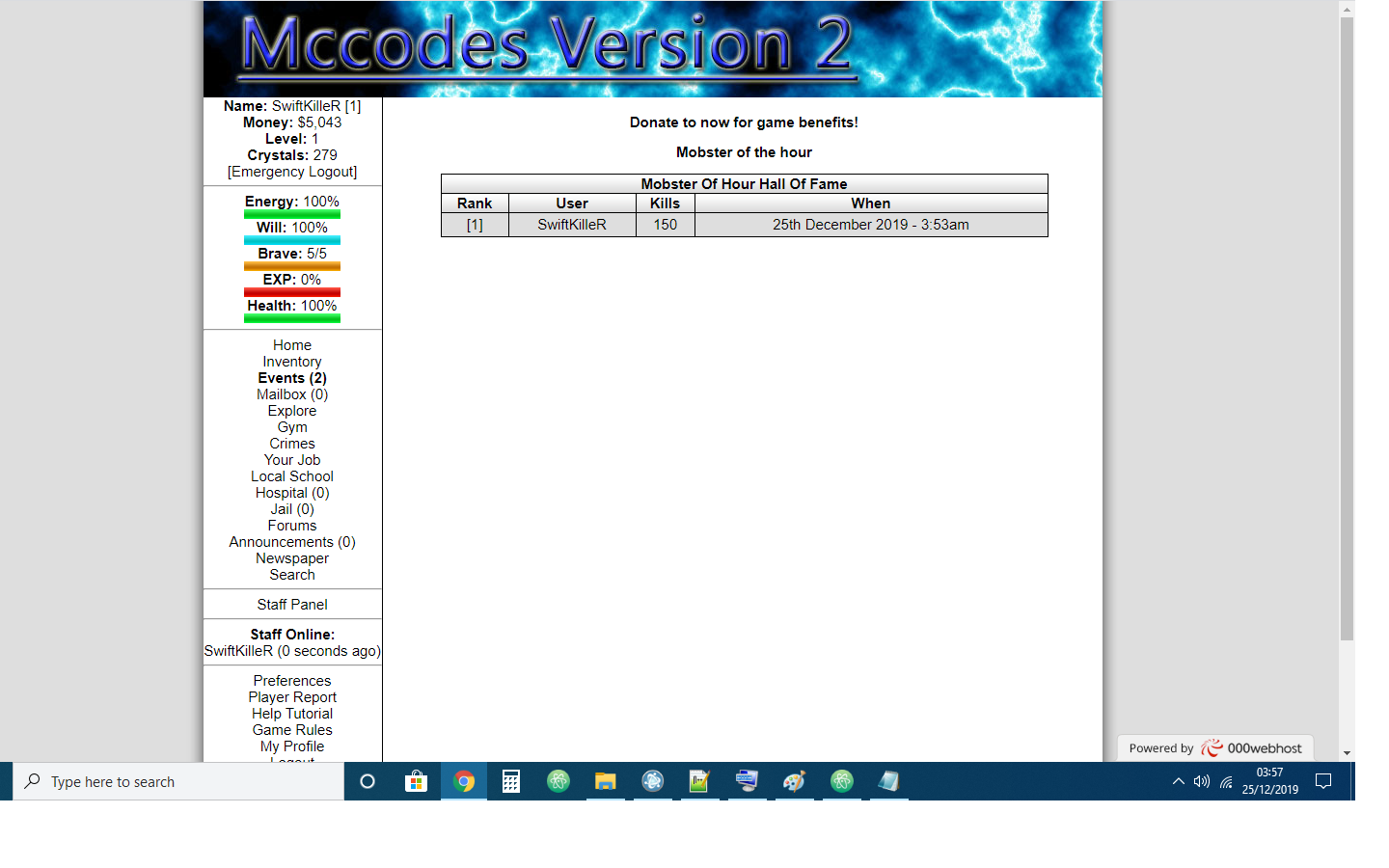 Objective is to get the most kills in the hour time frame the winner will be awarded with 50 crystals for winning.