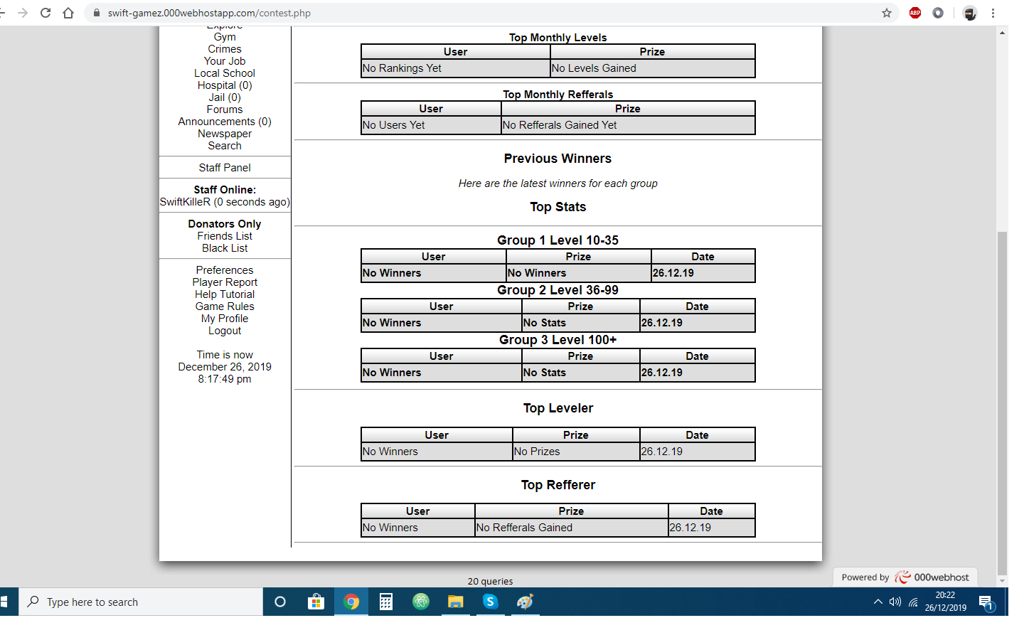 With this contest system installed on your game you can set up a weekly tournament based on top stats top crimes etc each group has a level groups level 1 - 10 etc