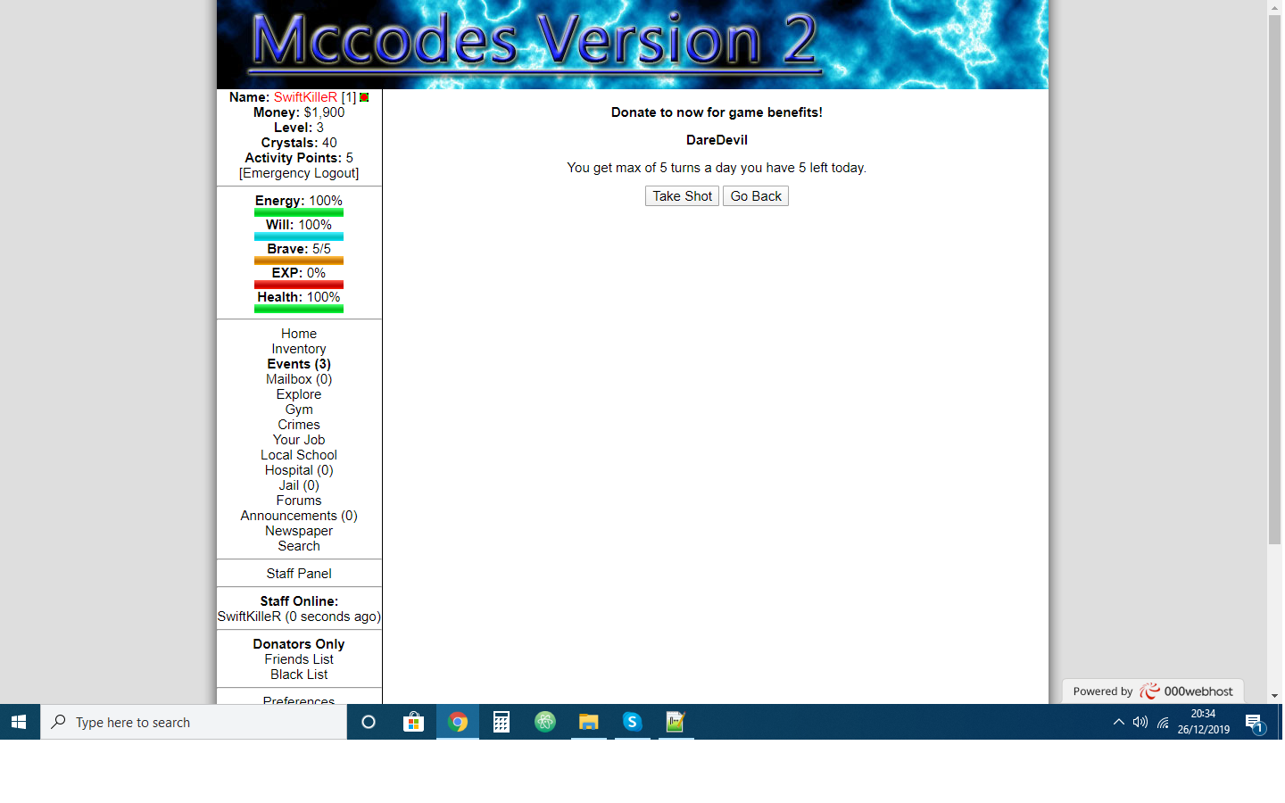 This module allows your users to take a chance and if there lucky they win if not there sent to the hospital.