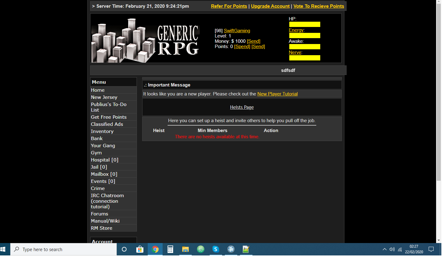 With this heists module installed on your grpg game your users will be able to set up organised crimes based on what you create.
