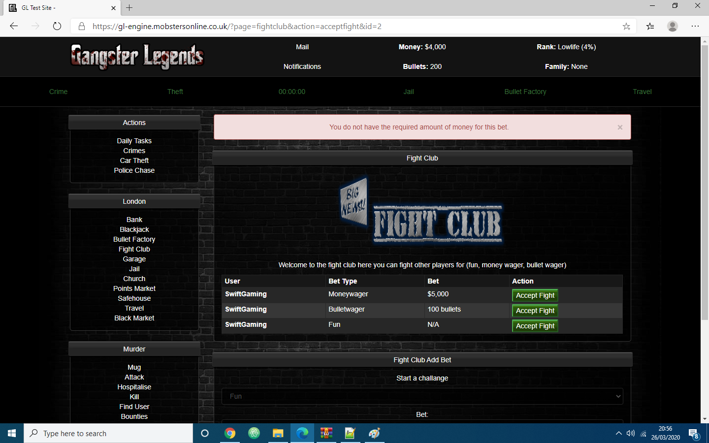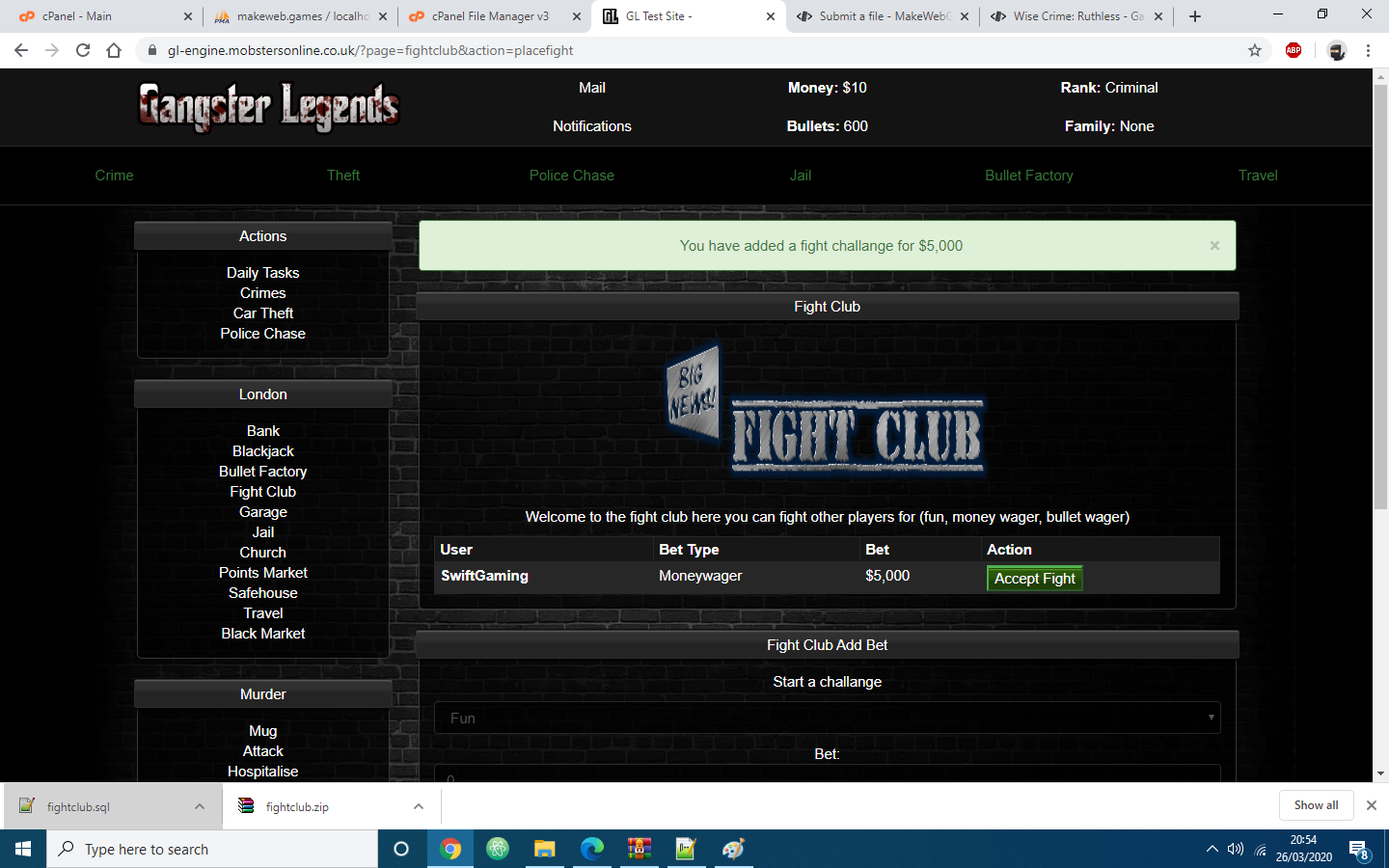 This module when installed on your game your users will be able to start their own fight club challenges for rewards.