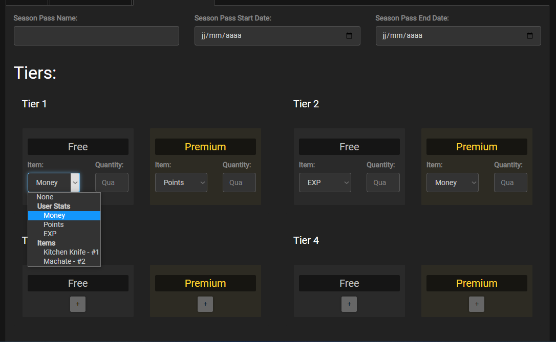 This mod allow you to add new type of content to your game hyping your players to finish the pass and collect all its items.