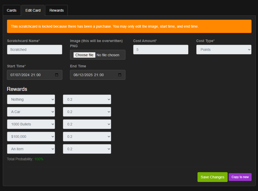 - Restrictions around editing cards that have been purchased to stop errors for users purchased-non-claimed cards