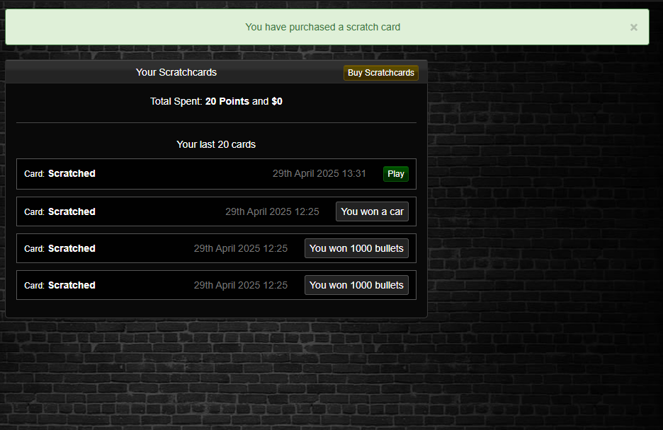 - Better UI for front-end scratch cards with the ability to scratch the boxes
