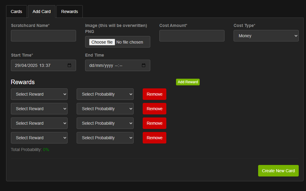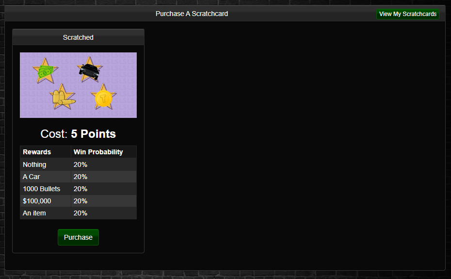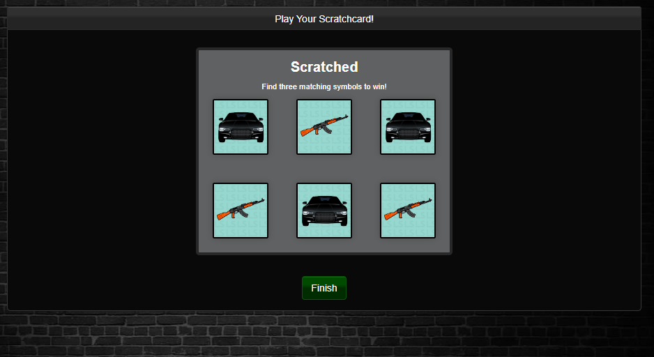 Bring the thrill of scratch cards to your game! This module lets players scratch and win prizes with a simple, fun experience. Easy to manage, quick to customise, and designed to keep players coming back for more!