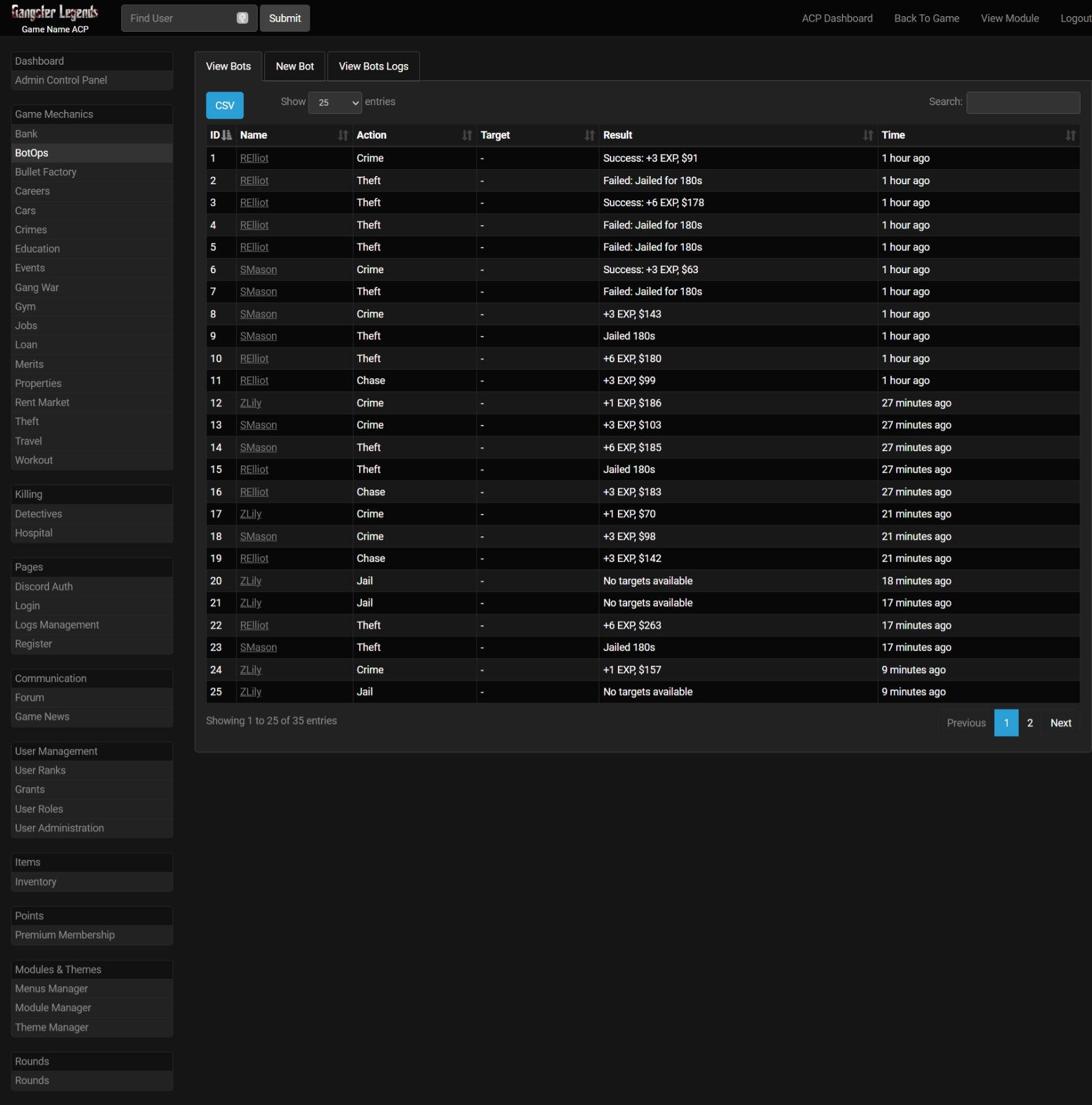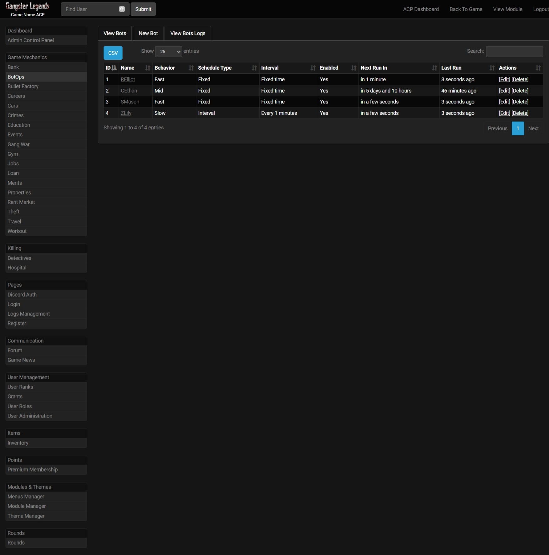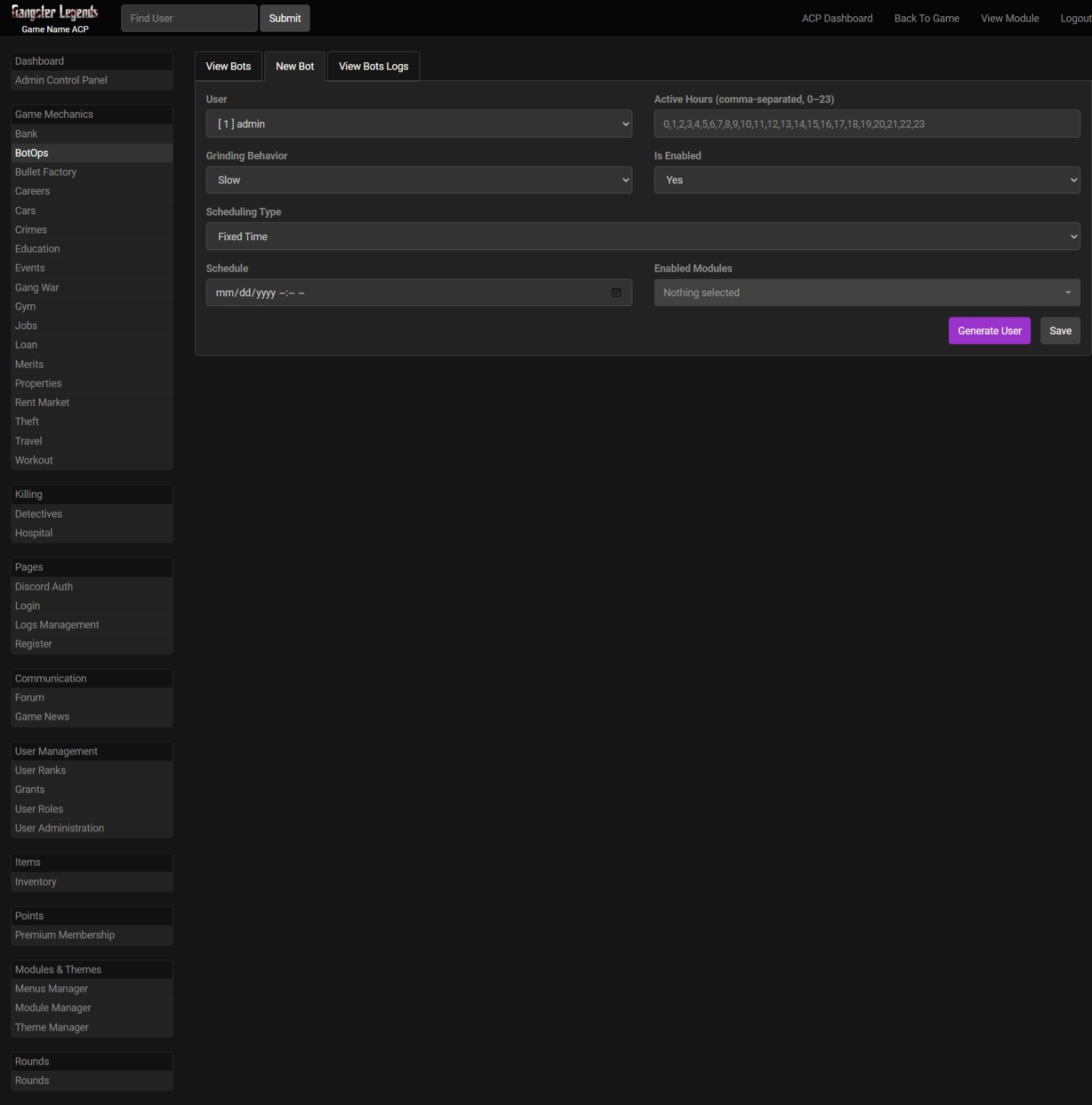 Want to automate gameplay and add dynamic NPC bots that act on their own schedule? The Bot System Module lets you create intelligent bots with customizable behaviors, active hours, and scheduling — enhancing your game world with lively autonomous players.