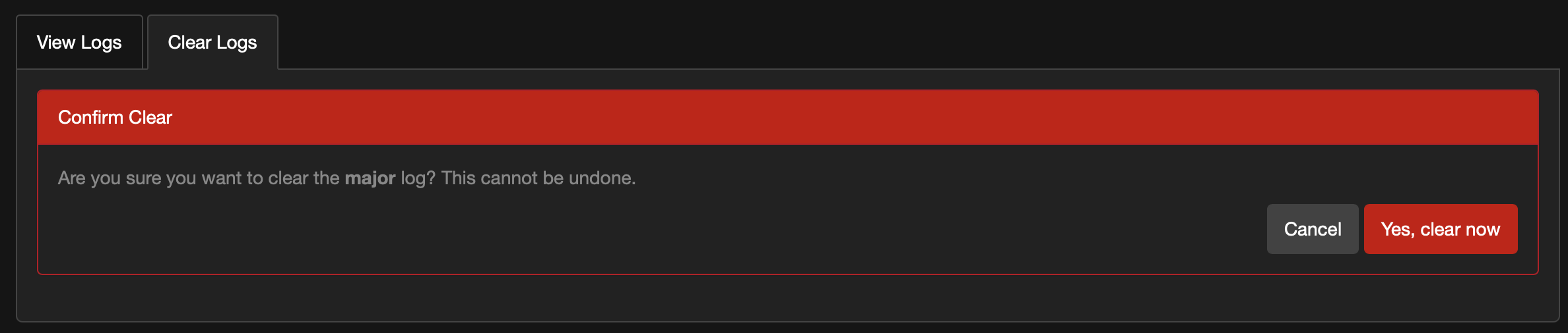 Admin tool to view, filter, download, and clear major/minor error logs stored in text files.